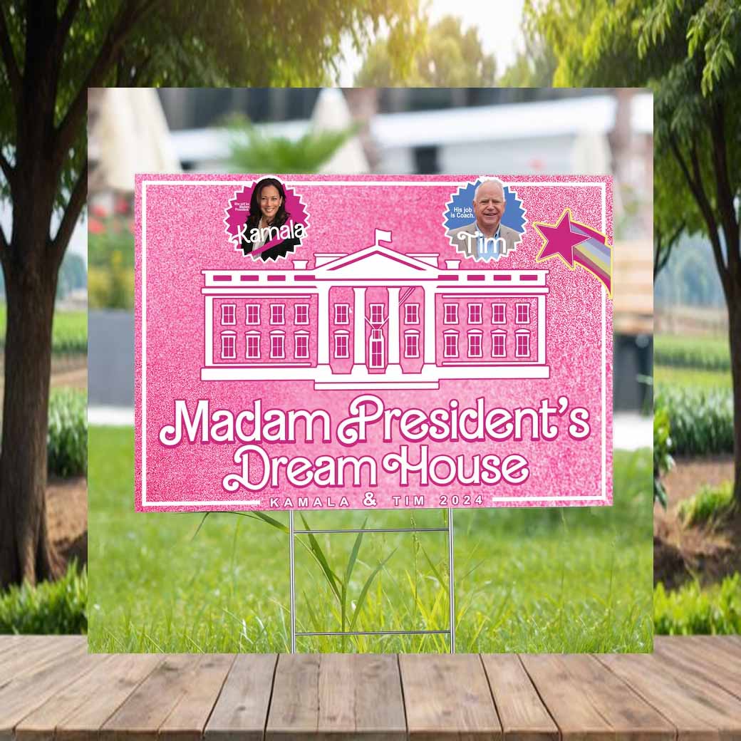 Elevate your yard with the Madam President’s Dream Lawn Yard Sign, a symbol of hope, inspiration, and unwavering determination.