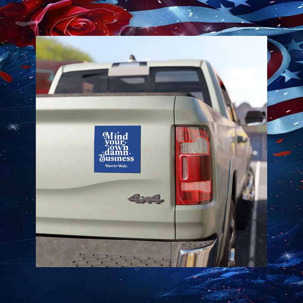 Protect your privacy and express yourself with the “Mind Your Own Damn Business” Harris Walz Car Magnet. Order yours today and enjoy the freedom of setting clear boundaries while making a bold statement on the road.