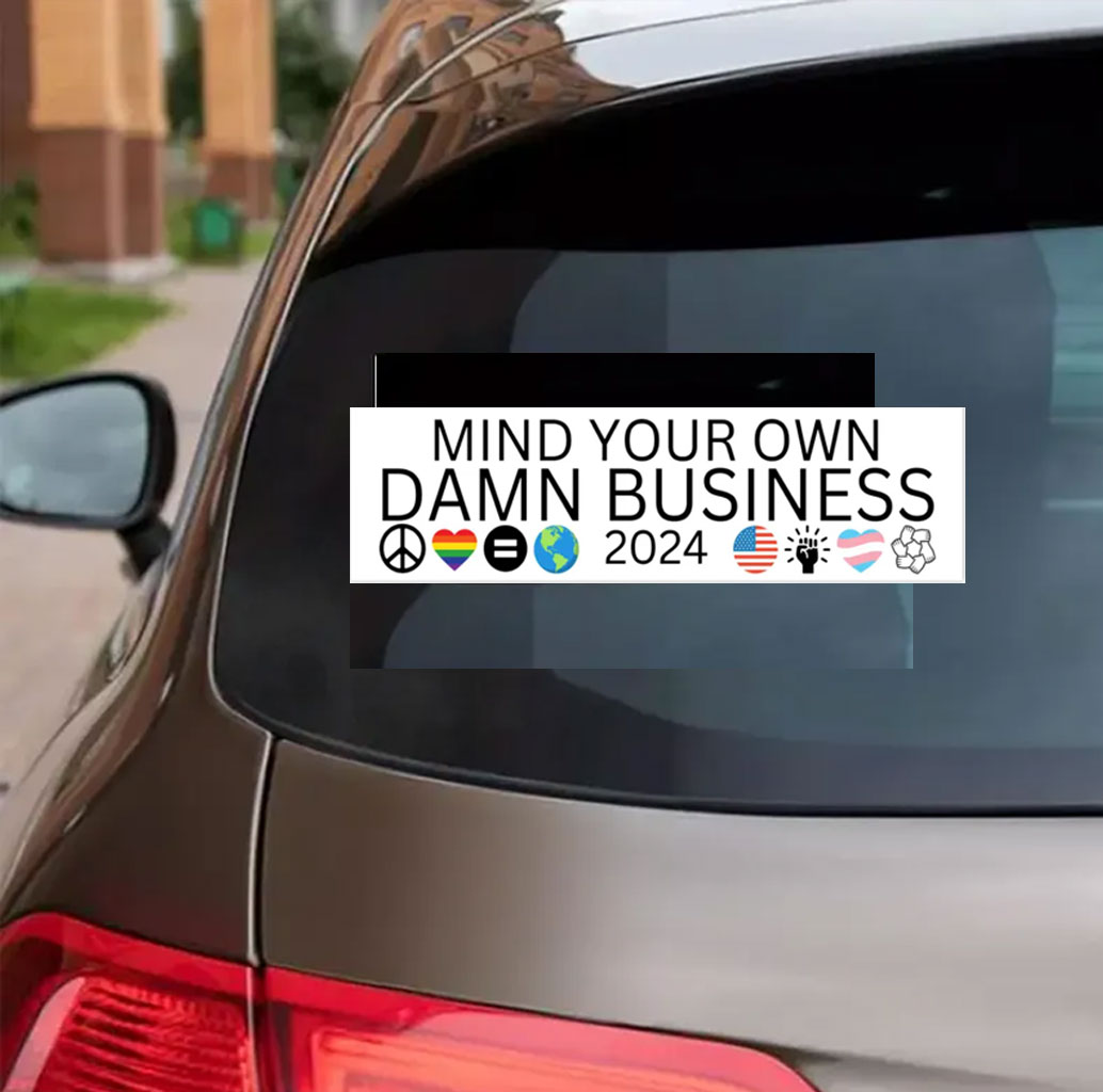 Mind Your Own DAMN BUSINESS, Tim Walz + Kamala Harris 2024 Car Magnets
