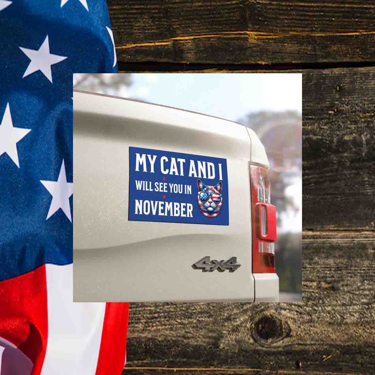 Show off your love for your feline friend and your sense of humor with our exclusive “My Cat and I Will See You in Vovember” car magnet.