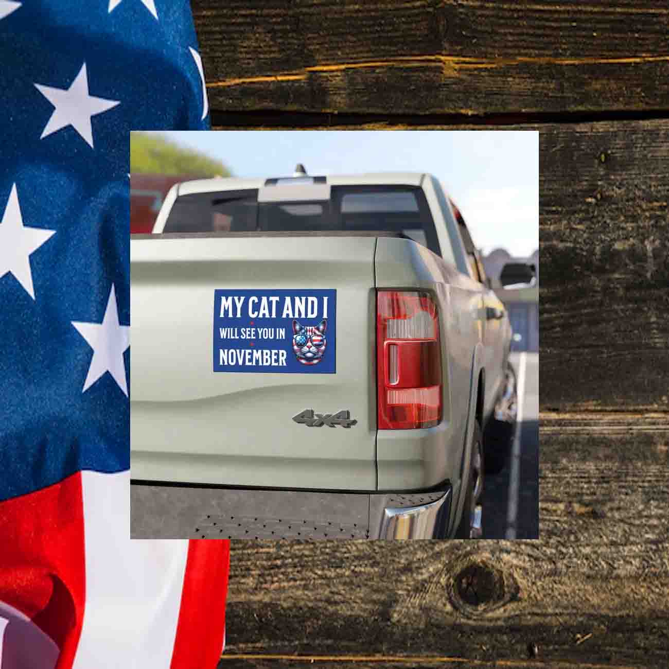 Whether you’re a proud cat owner or simply appreciate the humor, our “My Cat and I Will See You in Vovember” car magnet is the perfect way to add a touch of personality to your vehicle. Order yours today and let the world know that you and your feline friend are ready to take on the world, one purr at a time!