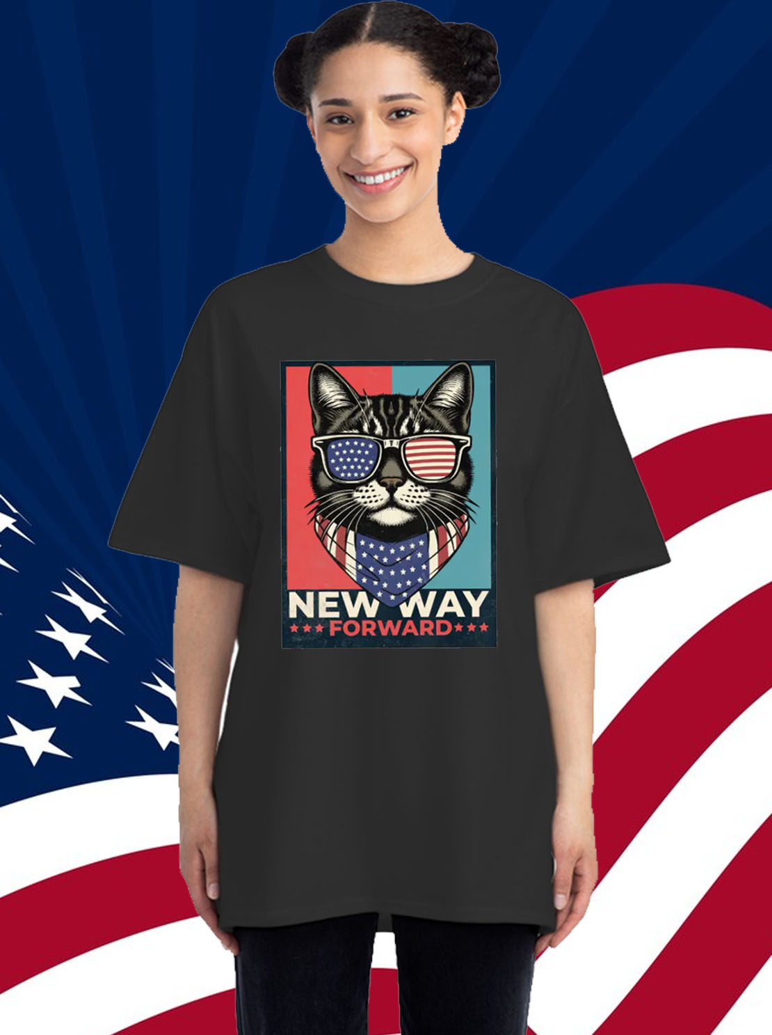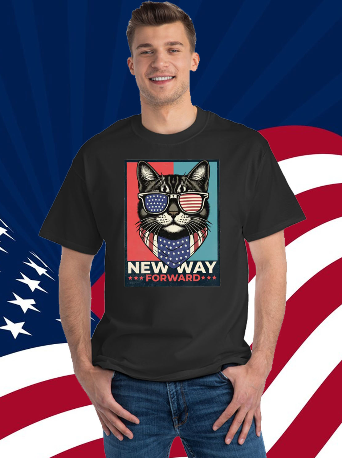 Unleash your inner cat lady and show your support for the dynamic duo of Kamala Harris and Tim Walz with our exclusive “New Way Forward” shirt.