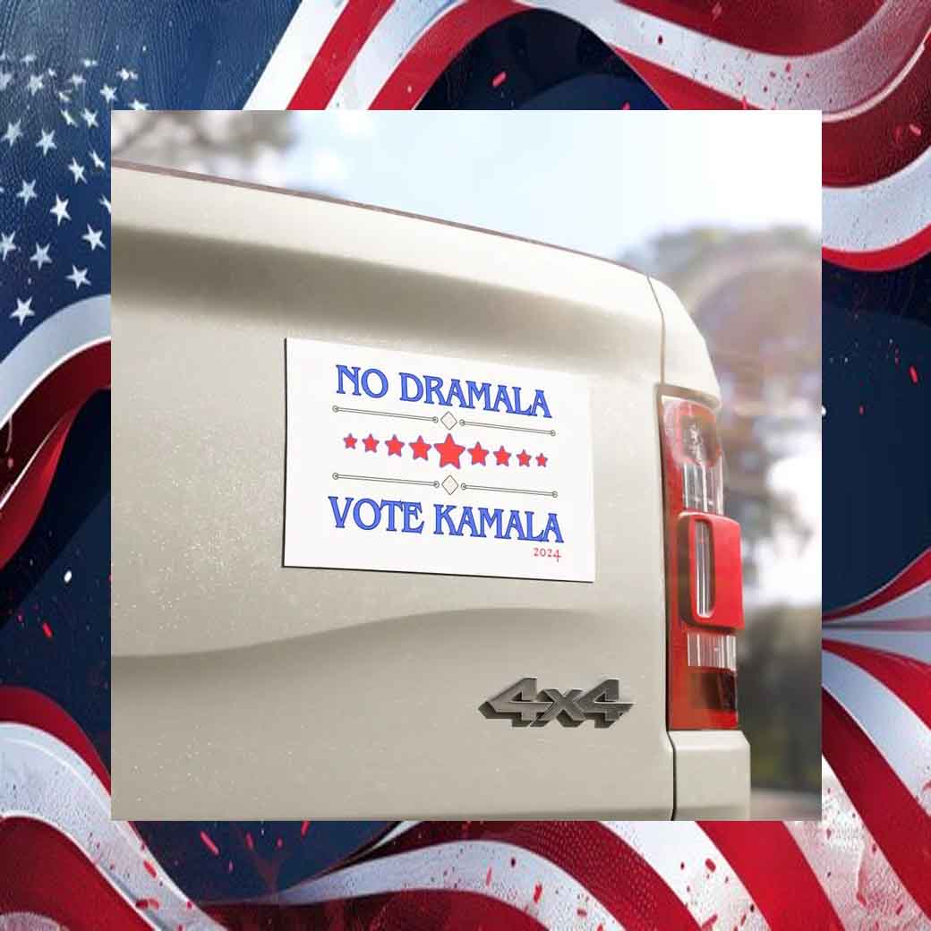 Show your support for Kamala Harris and the fight for a better future with our exclusive “No Dramala Vote Kamala 2024” car magnet.