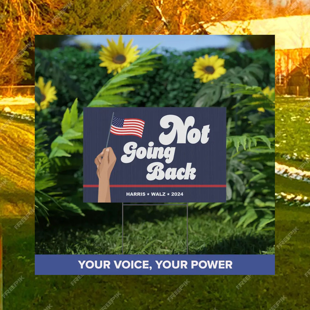 Stand tall with Kamala Harris and declare your unwavering support for a brighter future with our exclusive “Not Going Back” yard sign.