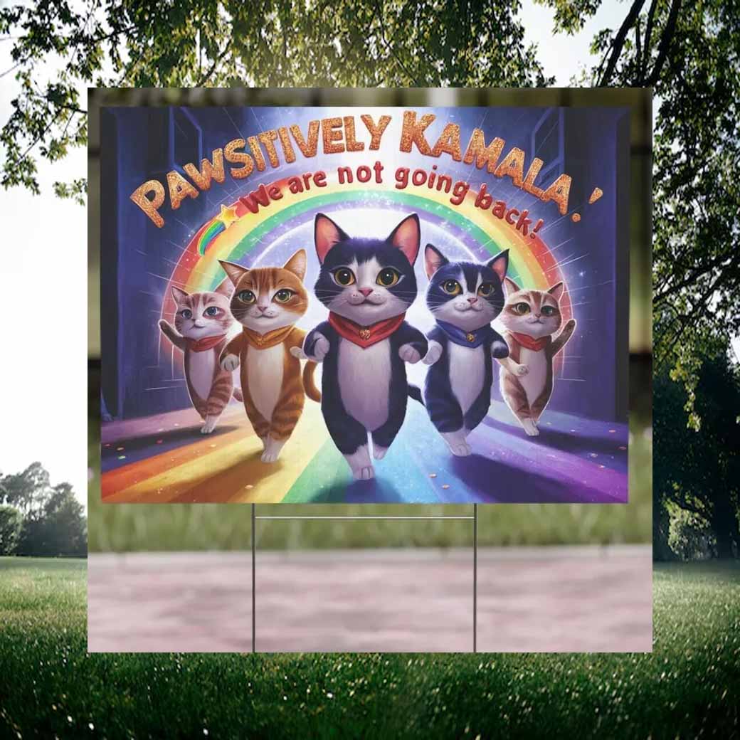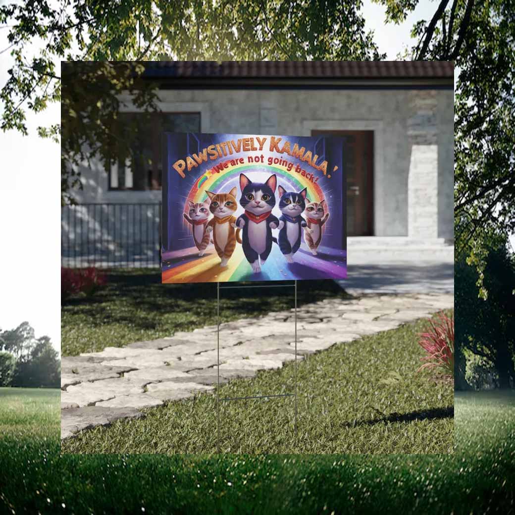 Stand tall with Pawsitvely Kamala and declare your unwavering support for progress and equality with our vibrant “We Are Not Going Back” yard sign.