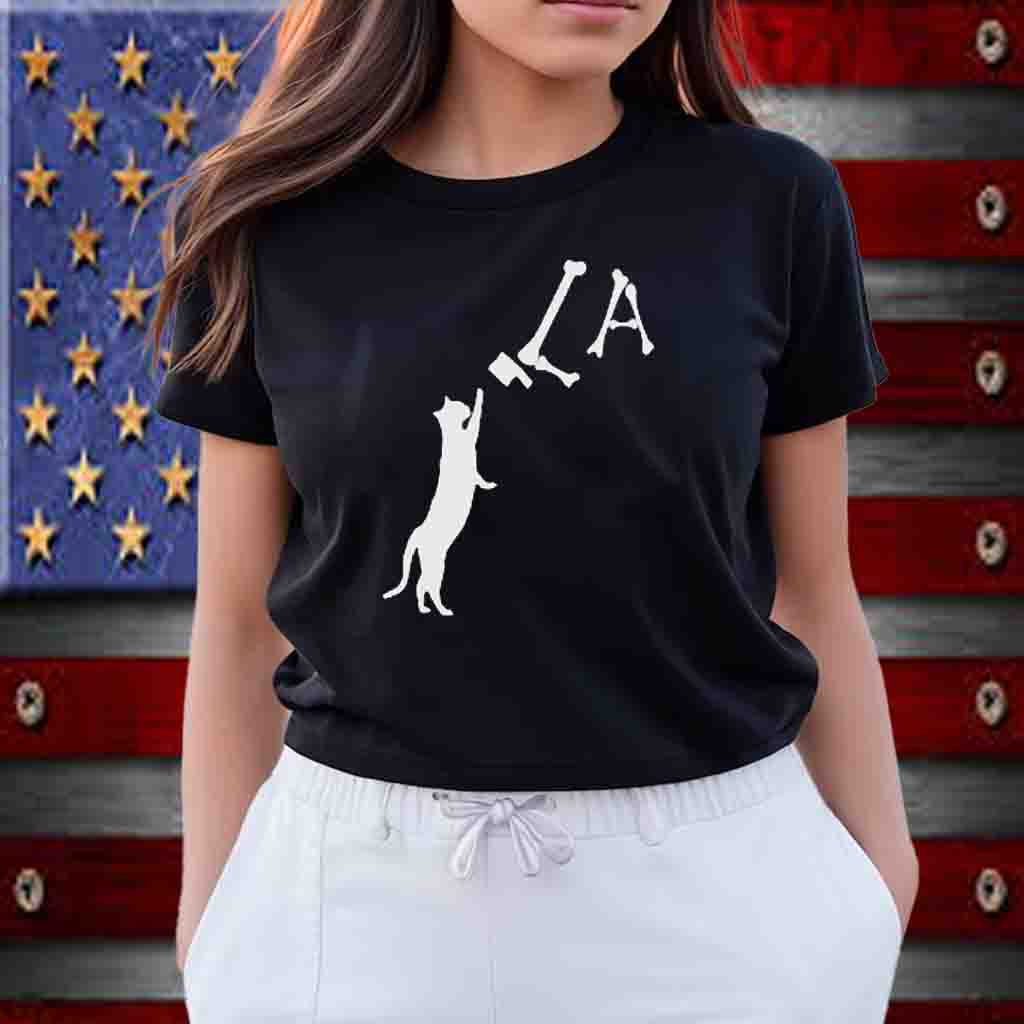 Bold “Cat Lady Comma-La” slogan, a nod to her love for her feline companions