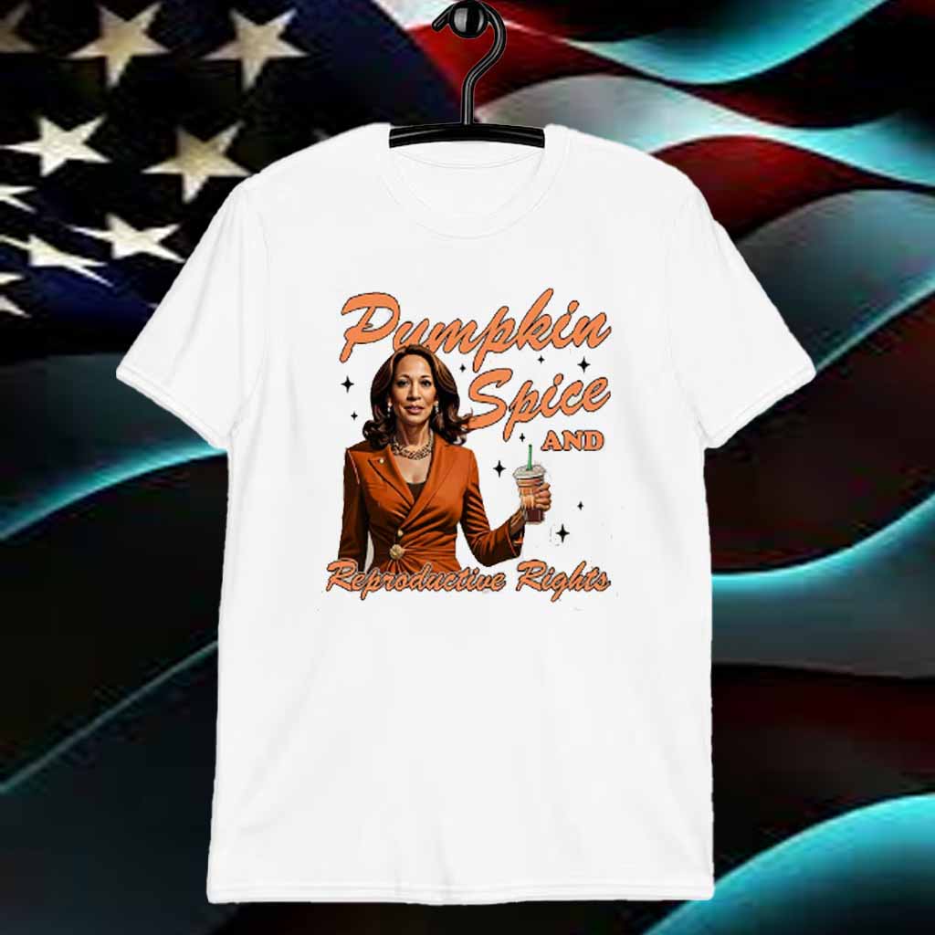 Embrace the spirit of fall and stand up for your beliefs with our exclusive Pumpkin Spice and Reproductive Rights Kamala Harris Shirt.
