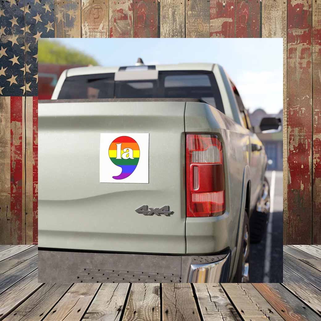 Embrace the rainbow and show your support with the Rainbow Comma La Car Magnet. Order yours today and let your vehicle speak volumes about your values and spirit!