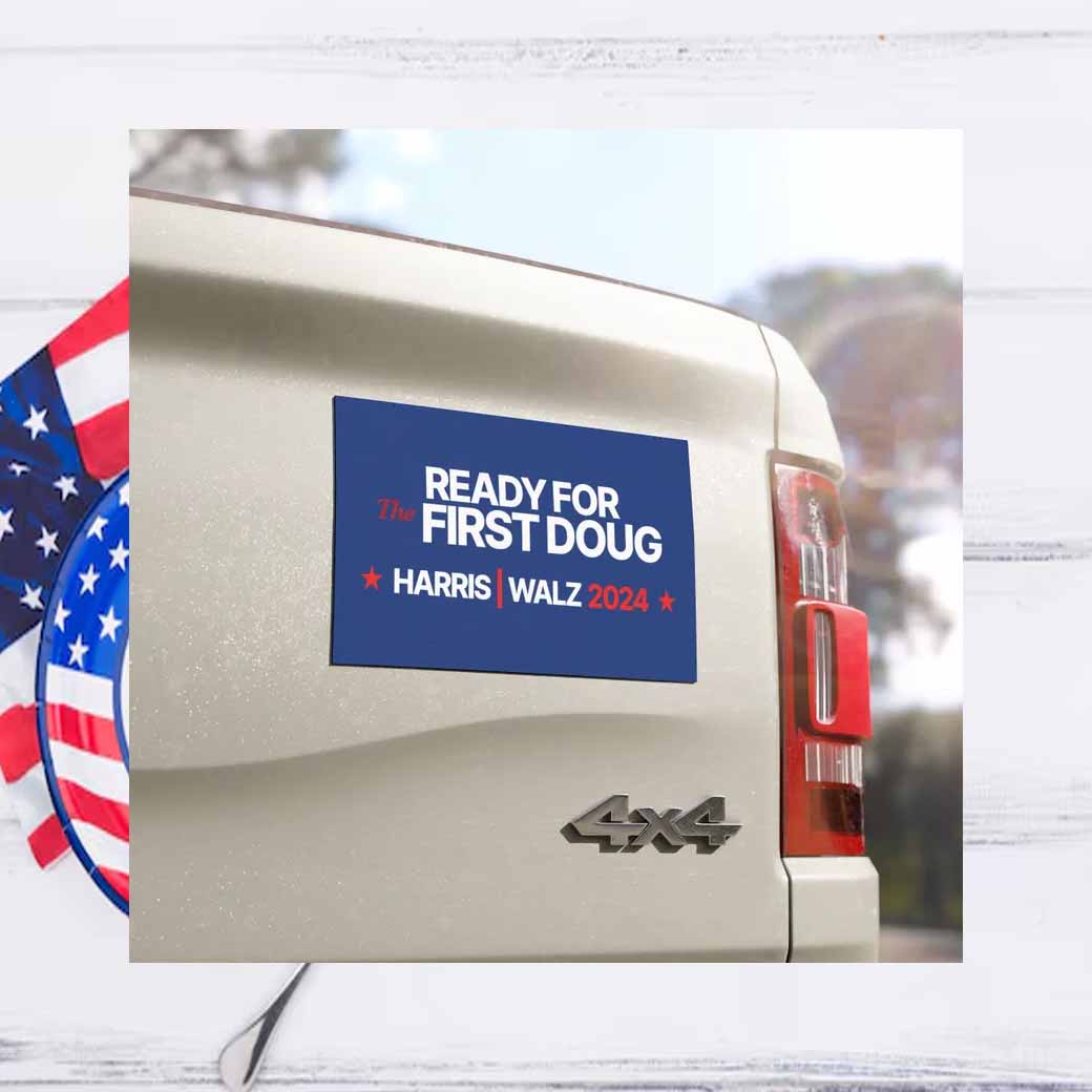 By displaying this magnet, you’re not only showing your support for Harris Walz but also becoming part of a movement for change. Join the growing number of Americans who believe in a brighter future and make your voice heard with our Ready for the First Dougm car magnet.