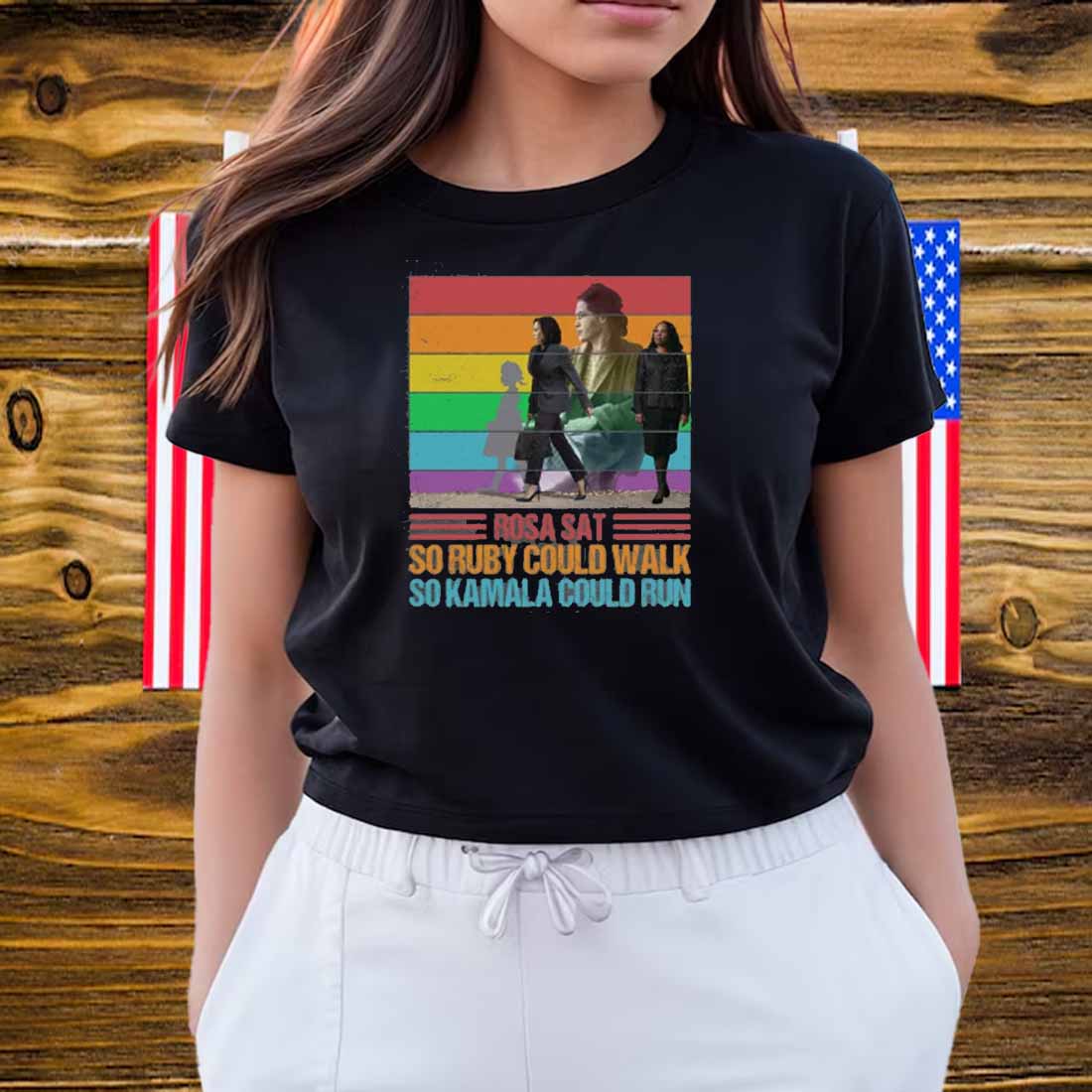 Join the movement and wear this Rosa Sat So Ruby Could Walk So Kamala Could Run Shirt. Together, we can continue to break down barriers and create a more just and equitable world for all.