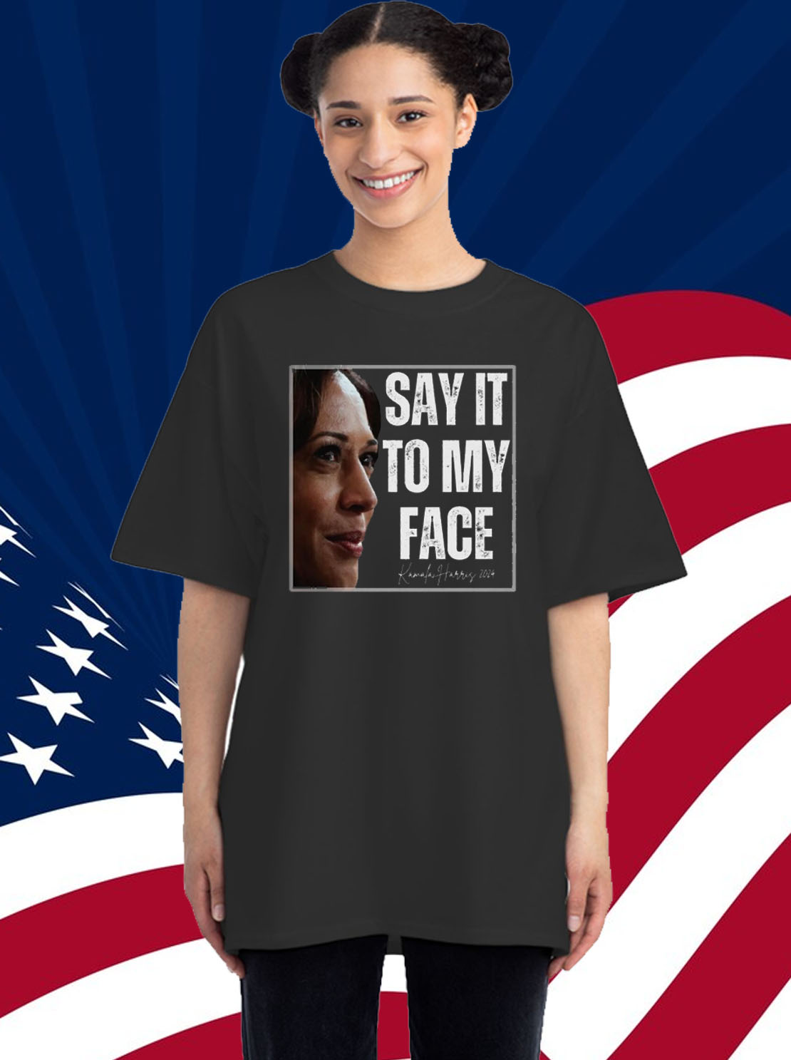 Join the movement and wear your support for Kamala Harris with pride. Our “Say It to My Face” T-shirt is more than just a piece of clothing; it’s a symbol of courage, determination, and the power of your voice.