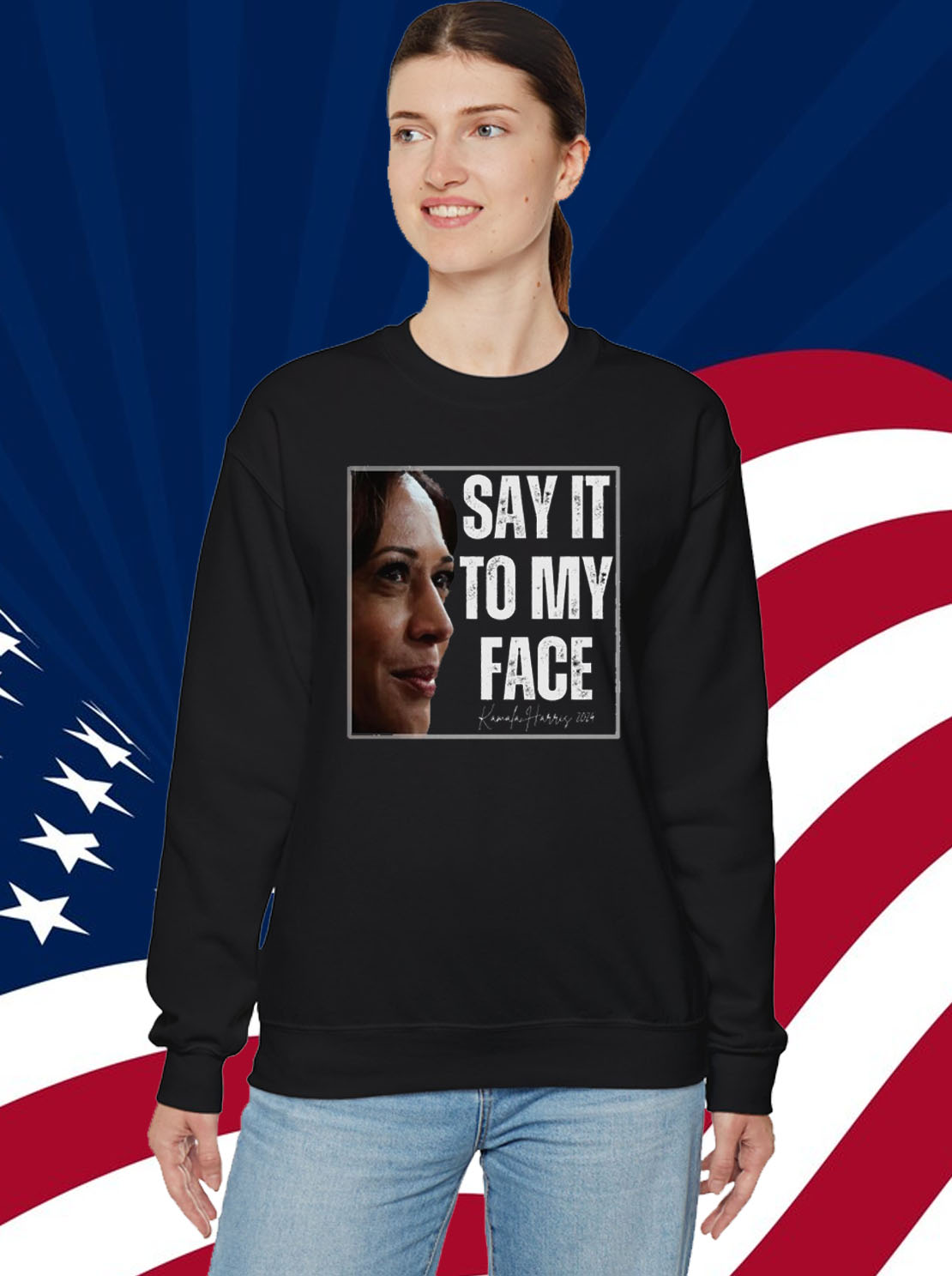Step into the spotlight with our exclusive “Say It to My Face” Kamala Harris 2024 T-shirt. This powerful statement piece embodies the unwavering spirit of Vice President Harris, inspiring you to speak your truth with conviction.