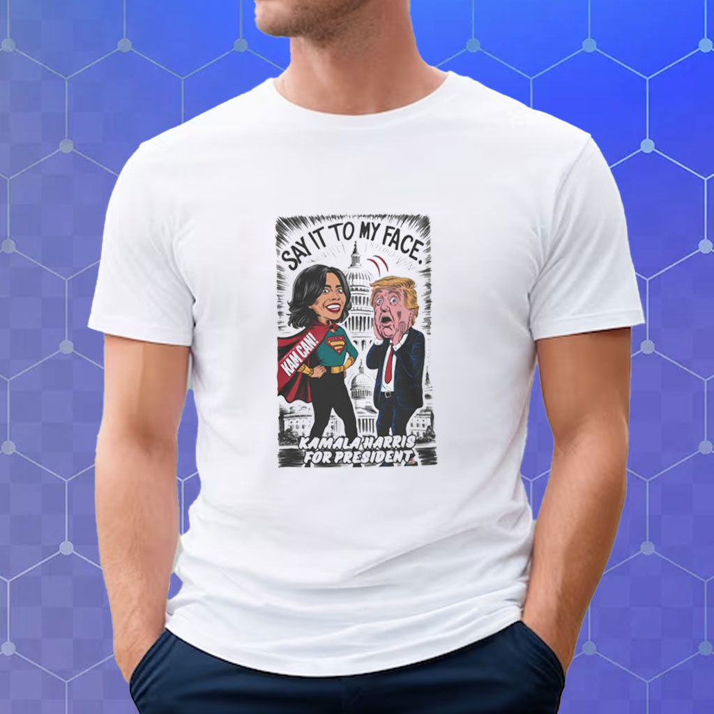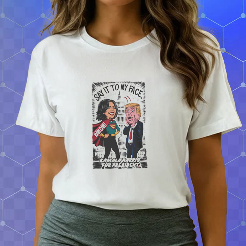 Join the movement and make your voice heard. Order your “Say It To My Face” Kamala Harris for President T-shirt today and show the world that you stand with a leader who is not afraid to speak her mind and fight for what’s right.