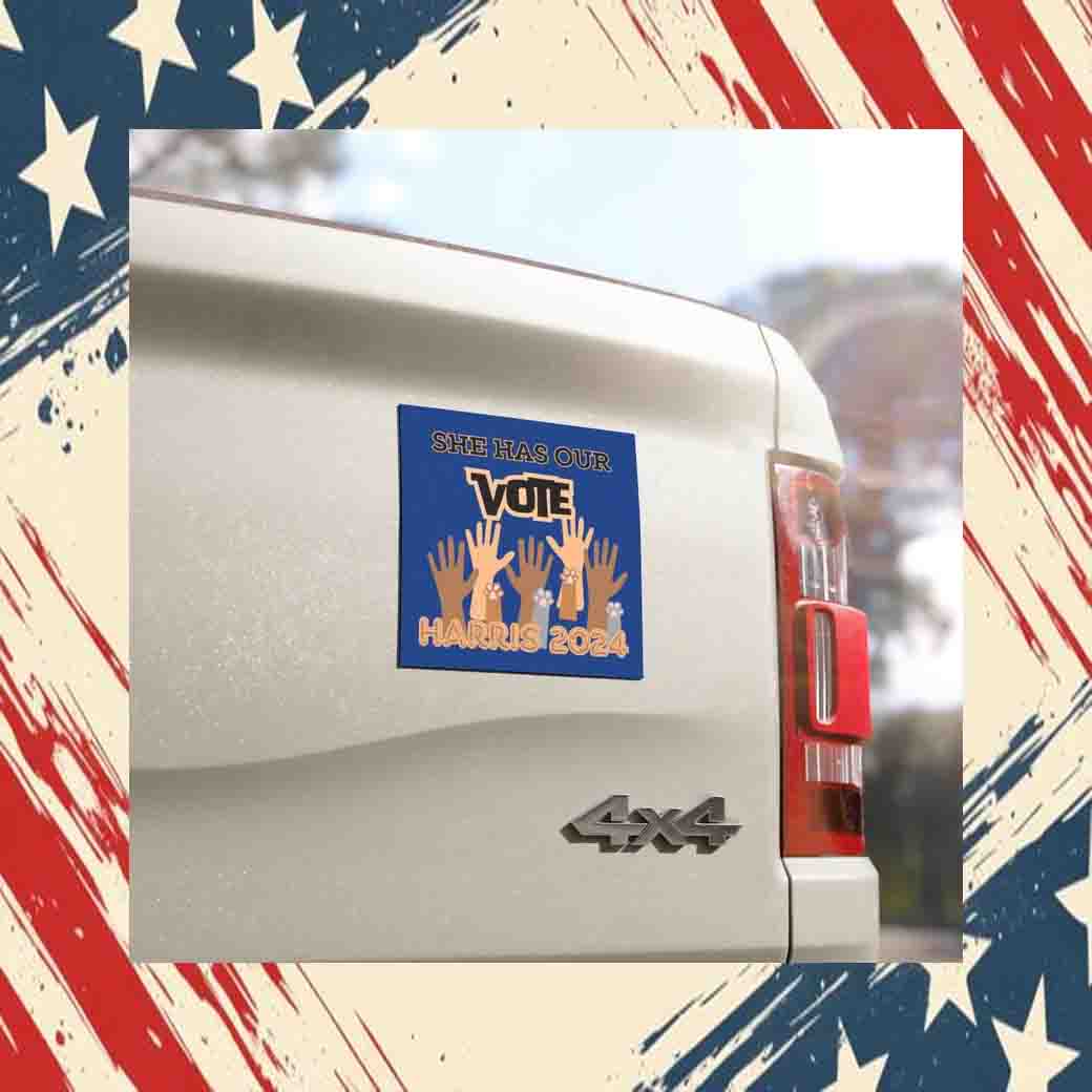 Join the movement and show your support for She Has Our Vote Harris 2024. Order your car magnet today and let your voice be heard!