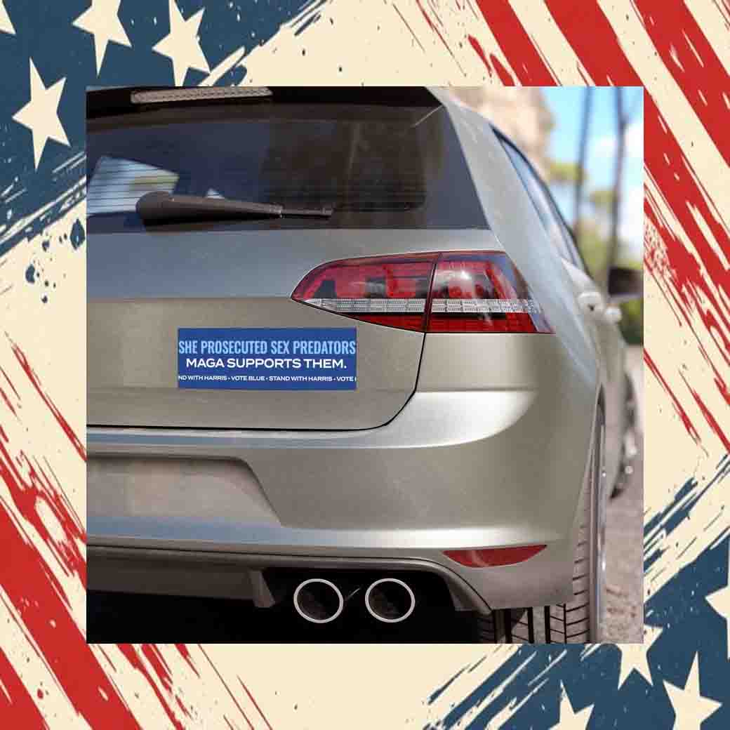 She Prosecuted Sex Predators Maga Supports Them, Stand With Harris, Vote Blue Car Magnet