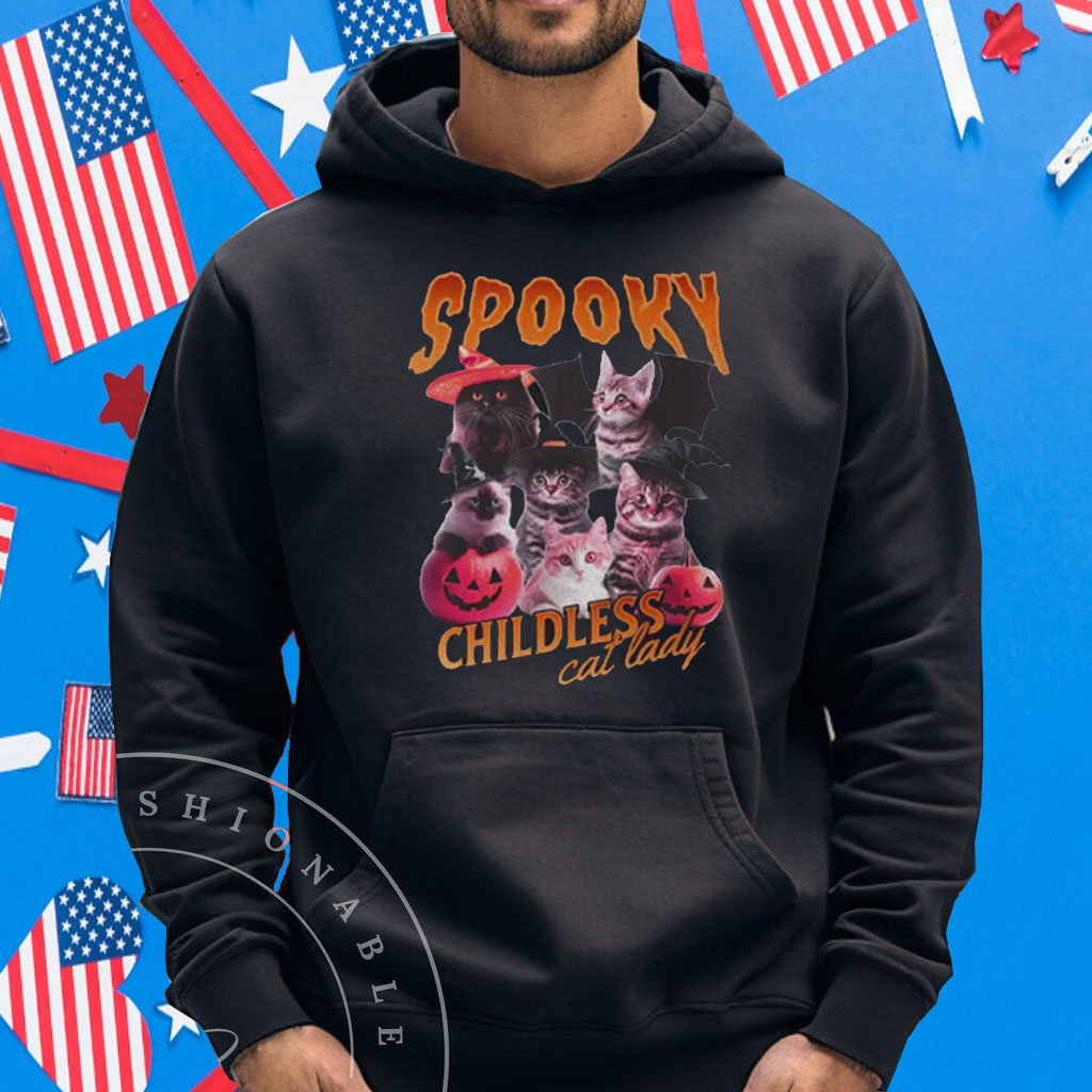 - The bold “Spooky Childless Cat Lady” lettering adds a touch of humor and personality.