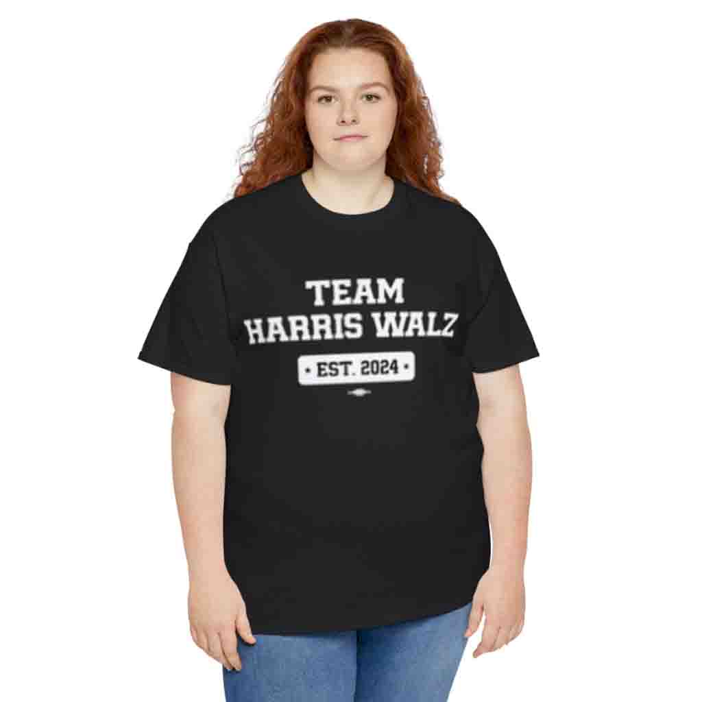 Eye-catching “Team Harris-Walz EST 2024” print in bold, patriotic colors.
