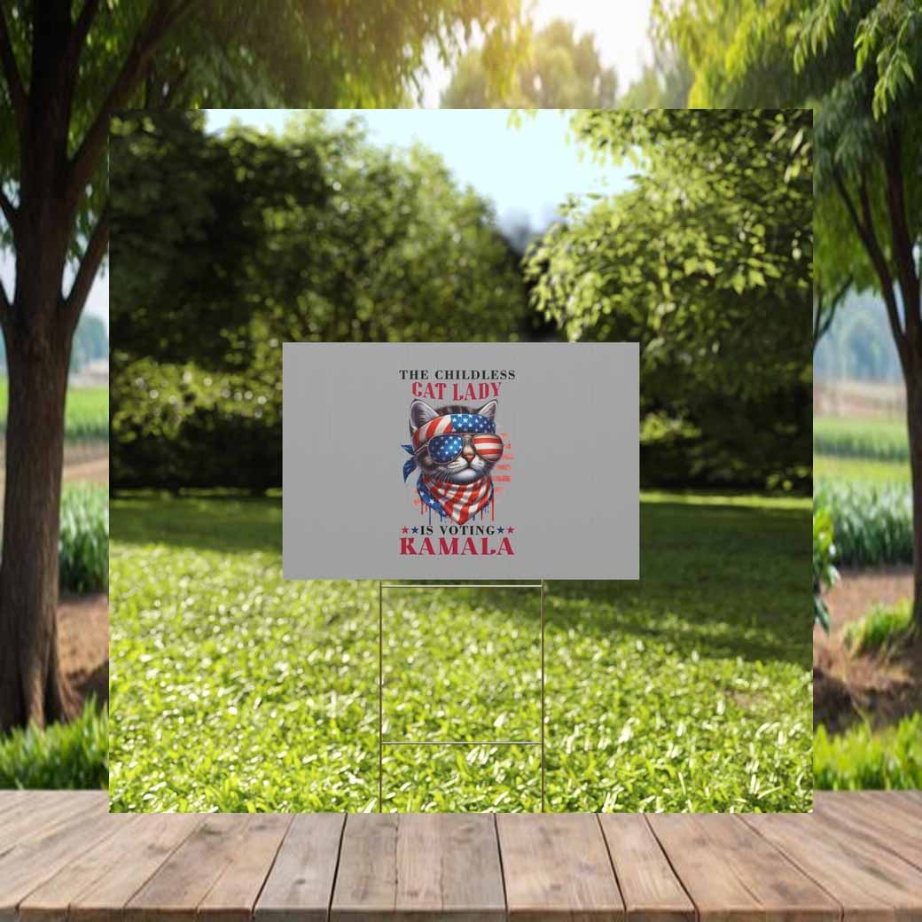 Order your “This Childless Cat Lady Is Voting Kamala” yard sign today and show the world your unwavering support for Kamala Harris and your feline family!