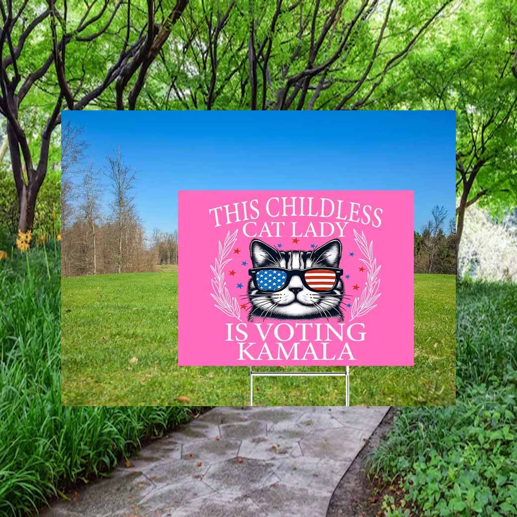 Order your “This Childless Cat Lady Is Voting Kamala” yard sign today and show the world your unwavering support for Kamala Harris and your feline companions!