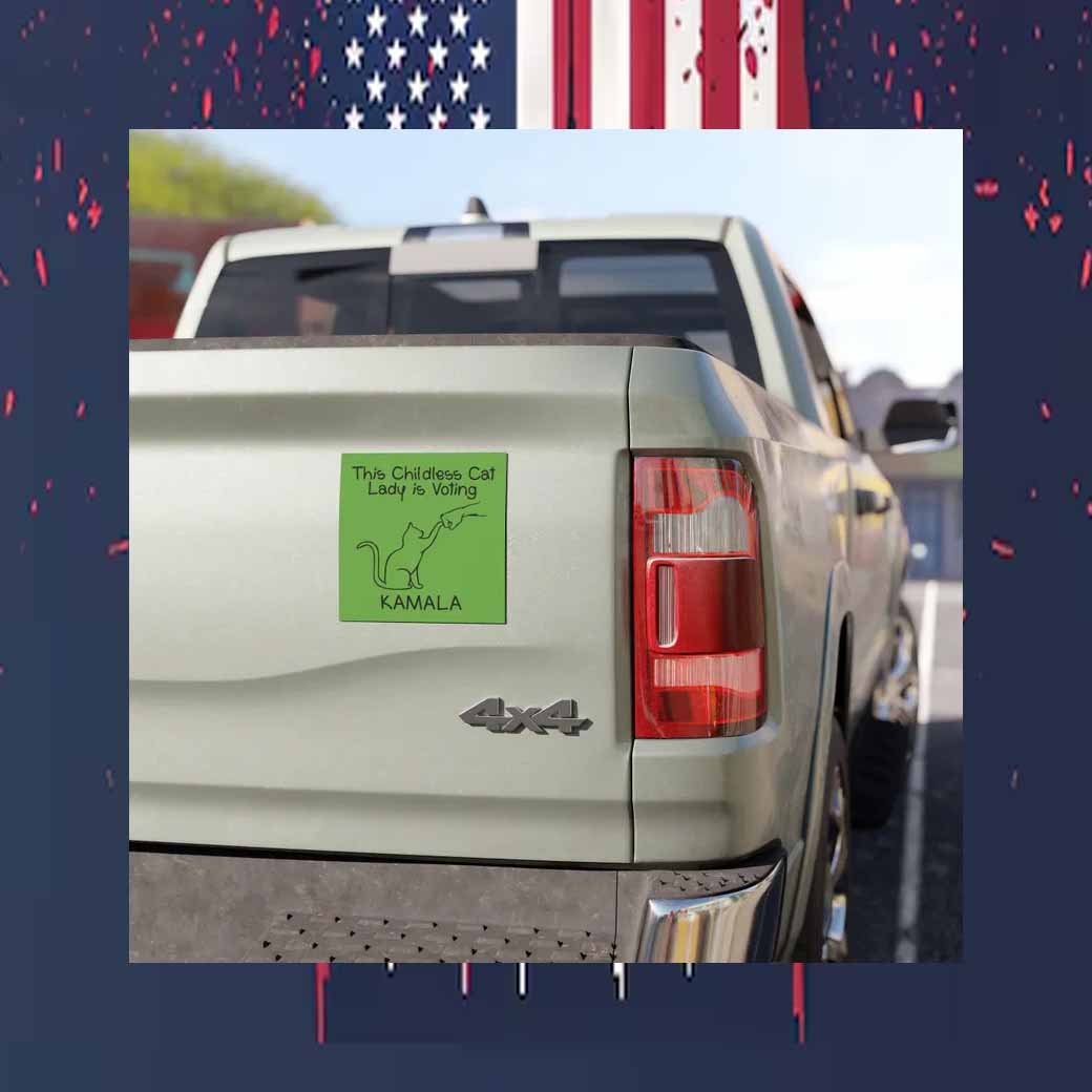 Show your support for Kamala Harris and your feline-loving status with this eye-catching car magnet!