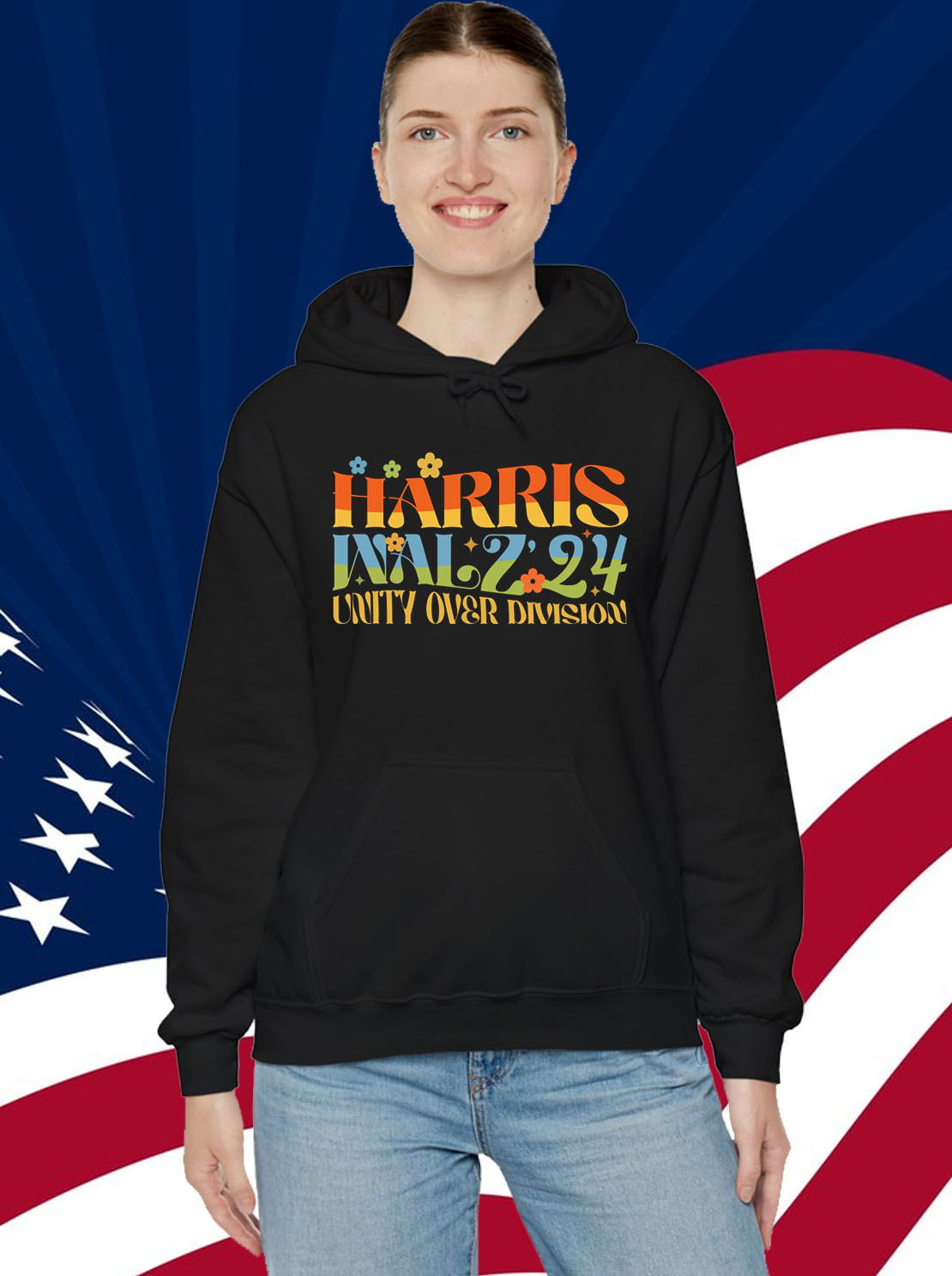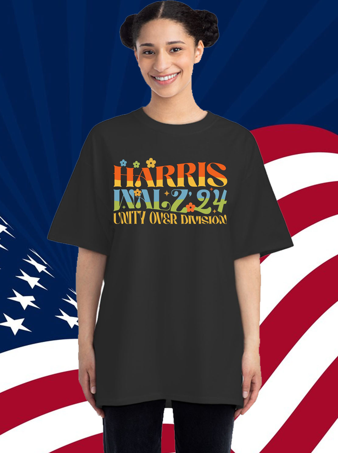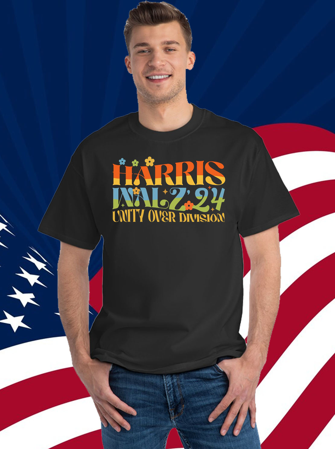 Vibrant, eye-catching design featuring the iconic “Unity Over Division” slogan