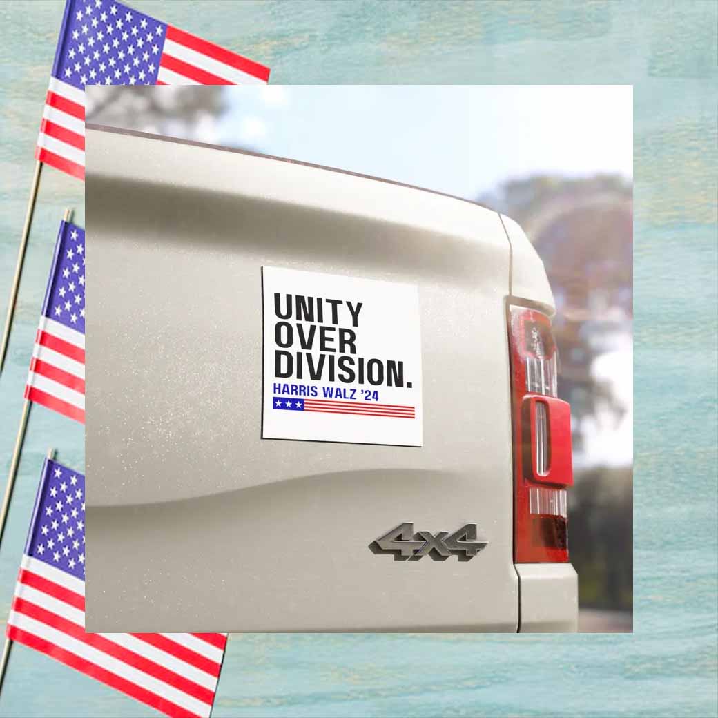 Join the movement for unity and order your Unity Over Division Patriotic Harris Walz 24 Kamala Harris for President Car Magnet today! Show your support for Kamala Harris and help create a more just and equitable society for all.