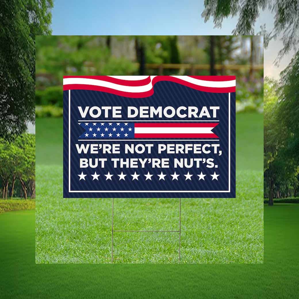 Vote Democrat We’re Not Perfect’s But They’re Nut’s Yard Sign