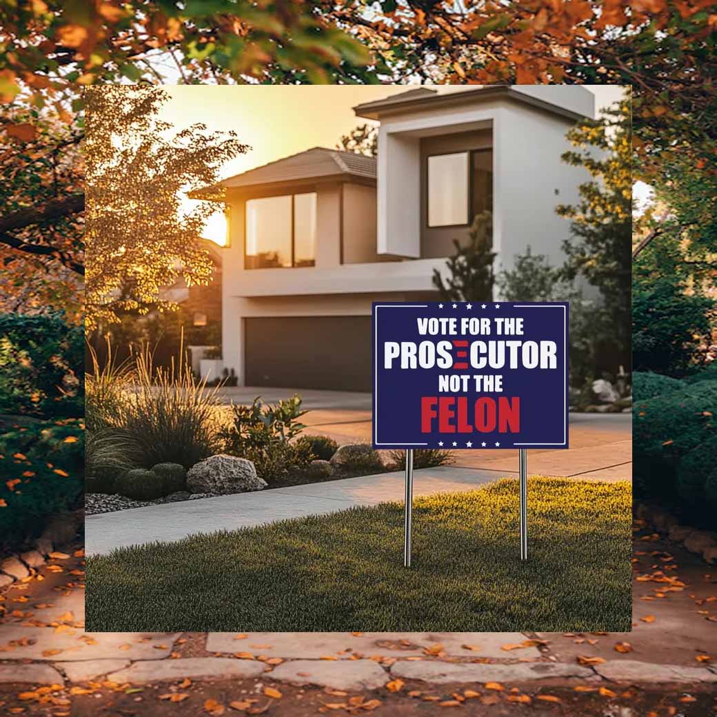 In the upcoming election, the choice is clear: vote for the prosecutor, not the felon. This yard sign is a powerful statement that sends a message to your neighbors and the community at large.