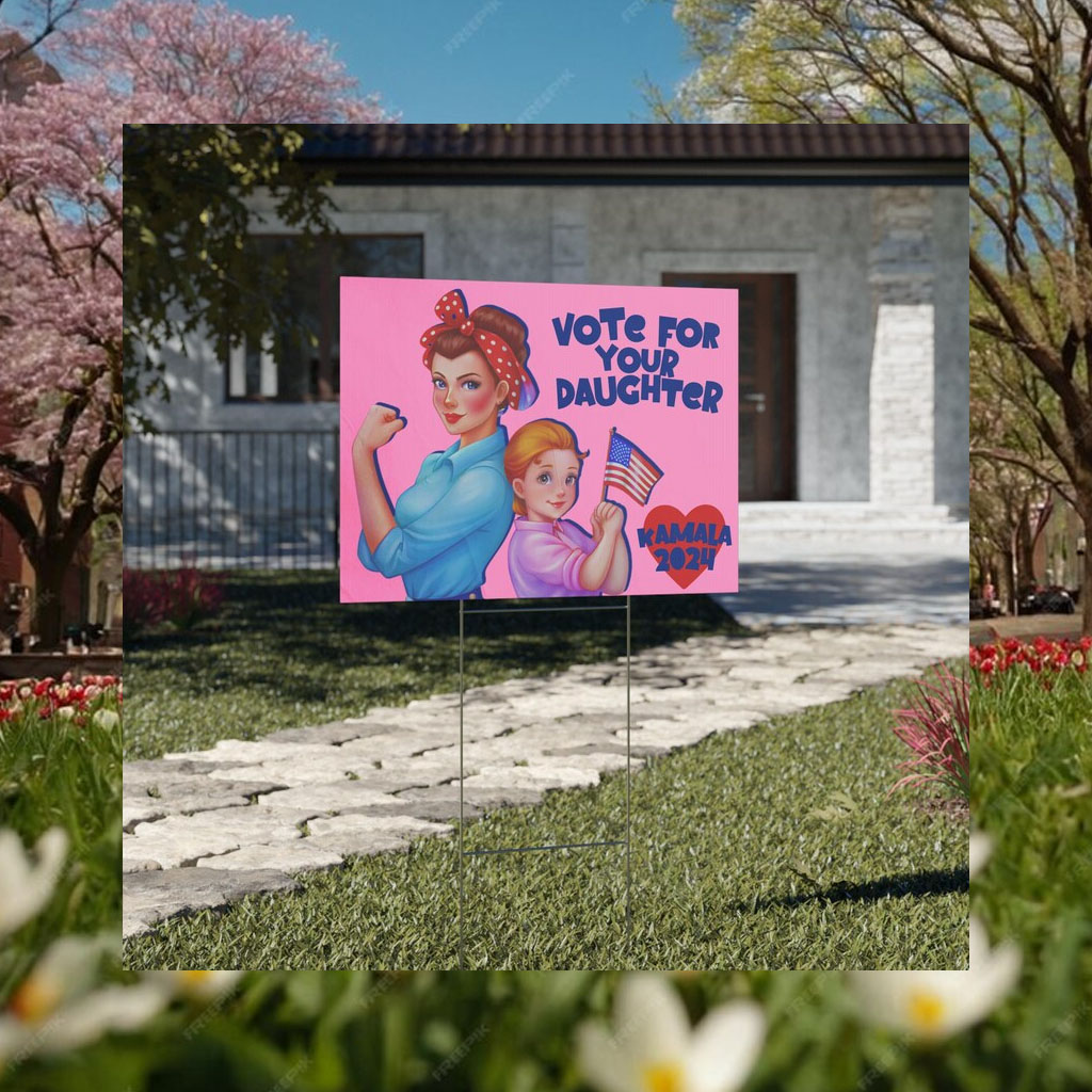 Join the movement to empower young women. Order your Vote For Your Daughter Yard Sign today and make a bold statement that will resonate for years to come. Let your daughter know that you believe in her and that her voice deserves to be heard.