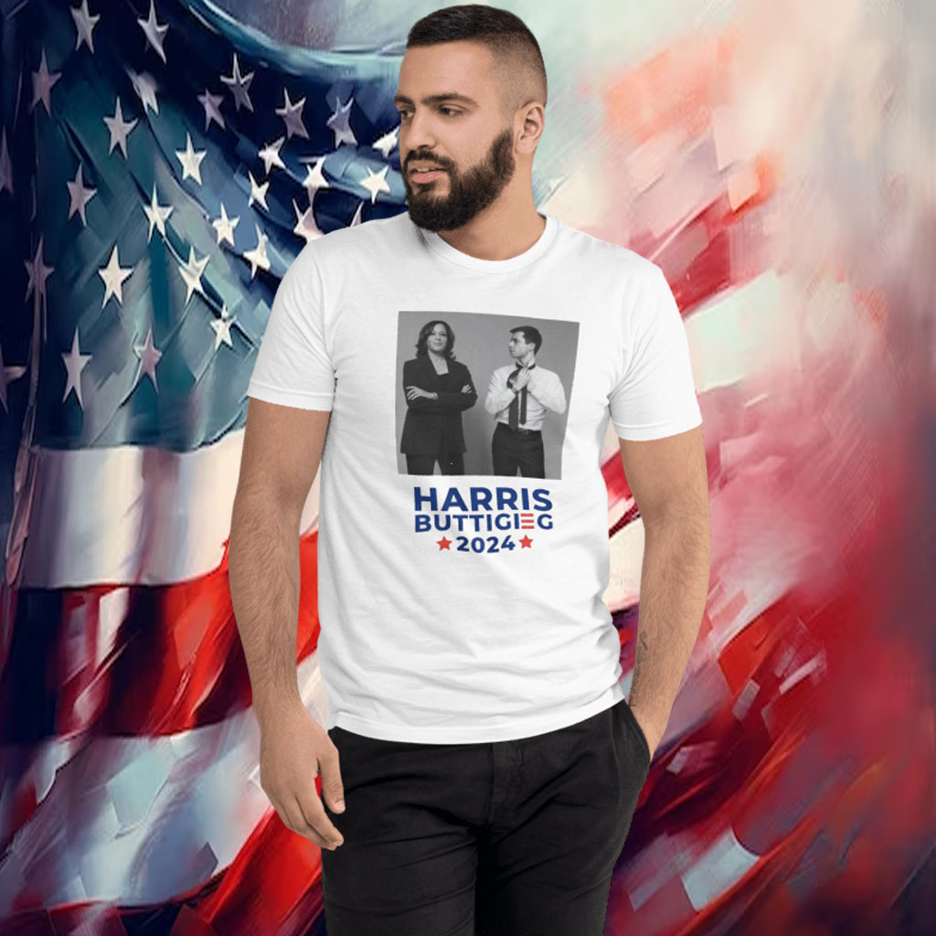 Show your support for the dynamic duo of Harris and Buttigieg with this bold and stylish tee shirt.