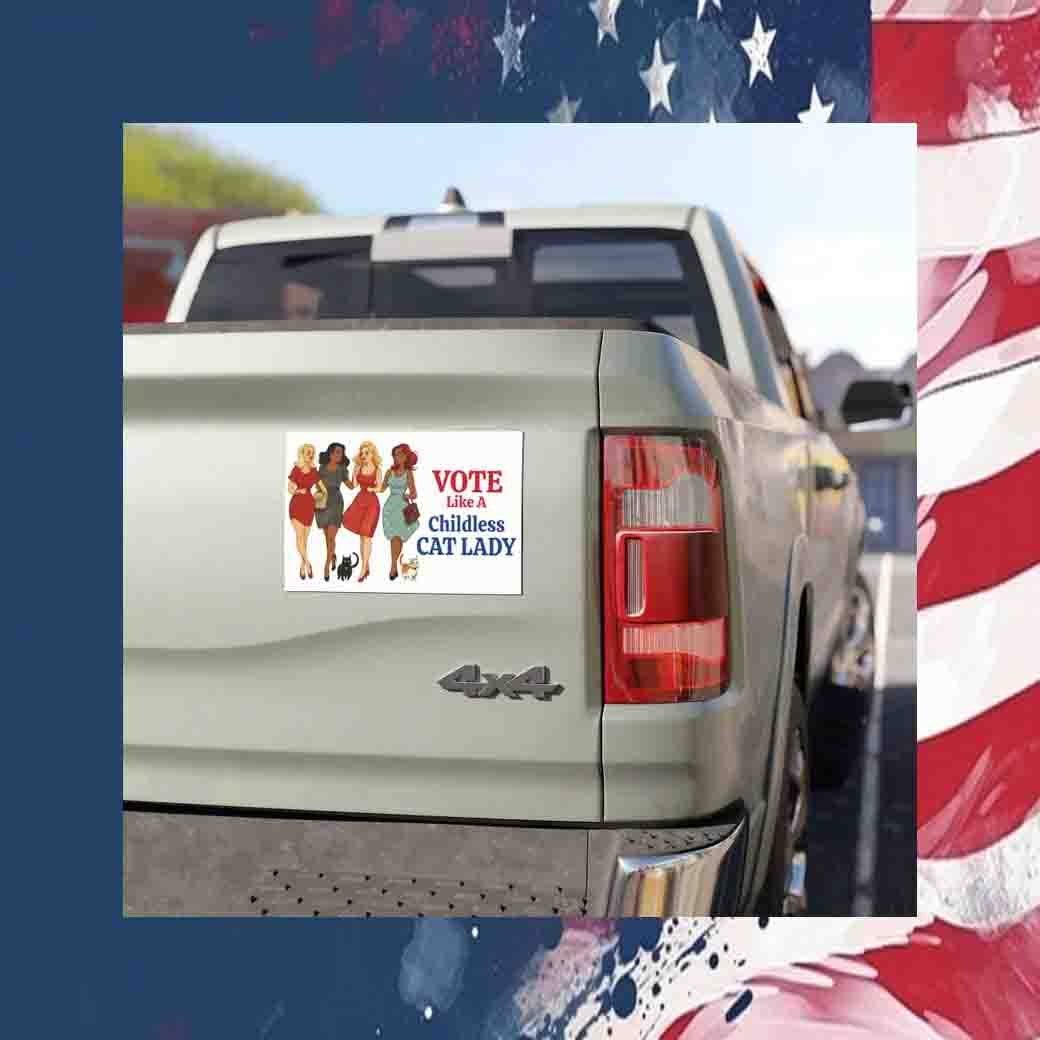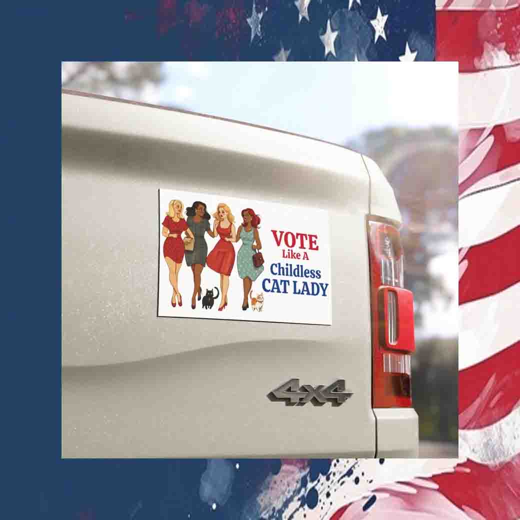 Unleash your inner feline fury with our “Vote Like a Childless Cat Lady” car magnet! This sassy and stylish accessory is the purr-fect way to show your political stance while adding a touch of feline flair to your ride.