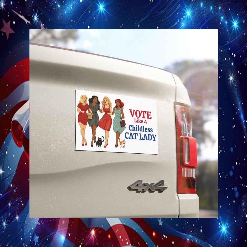 Unleash your inner feline fury with our “Vote Like a Childless Cat Lady” magnet! This sassy and stylish accessory is the purr-fect way to show your support for your favorite candidates and causes.