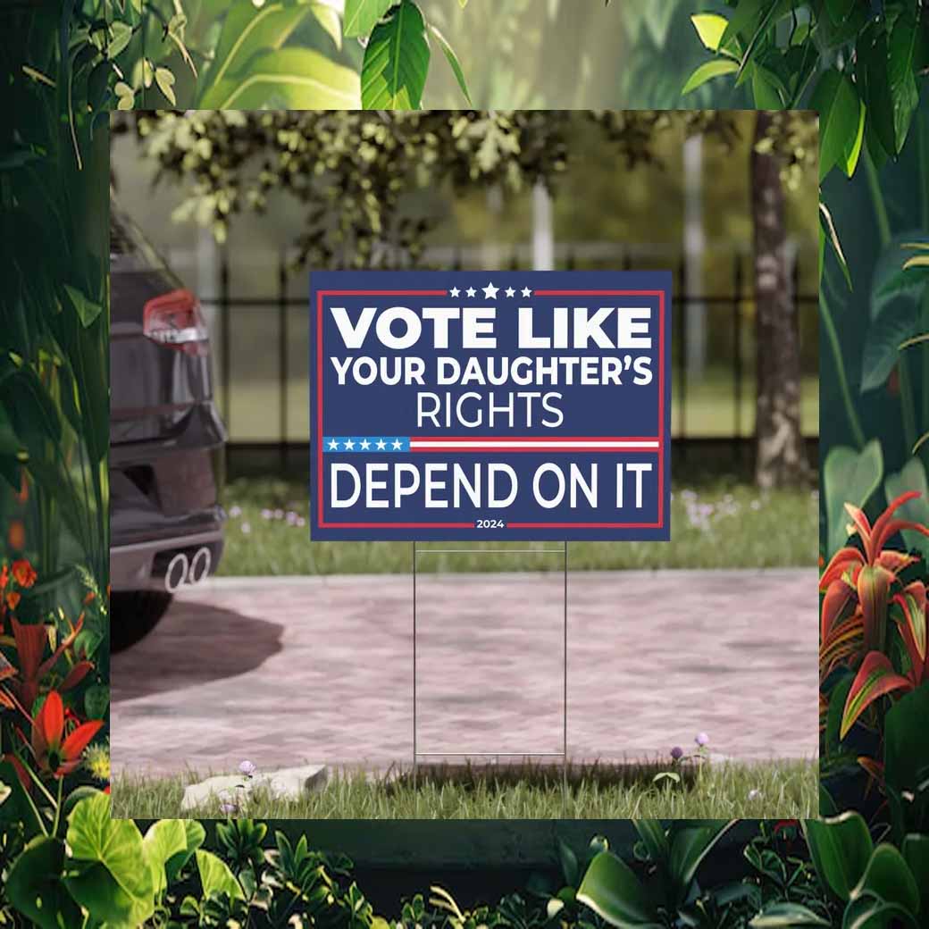 Stand up for the future of your daughter and all women with our powerful “Vote Like Your Daughter’s Rights Depend On It” Harris Walz yard sign.