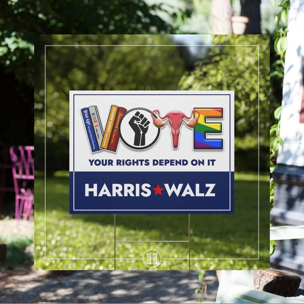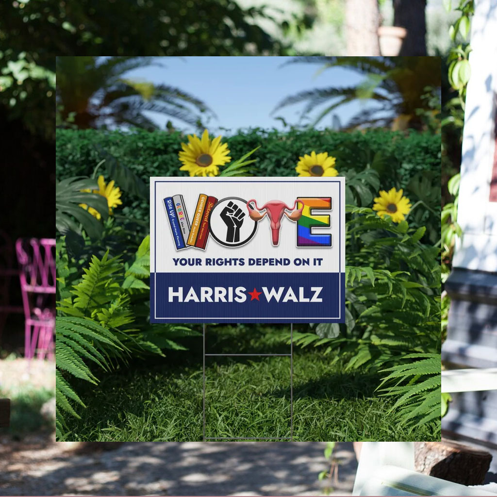 In the face of challenges to our democracy, it’s more crucial than ever to make your voice heard. Our “Vote Your Rights Depend On It” yard sign is a powerful symbol of your unwavering commitment to safeguarding your fundamental rights.