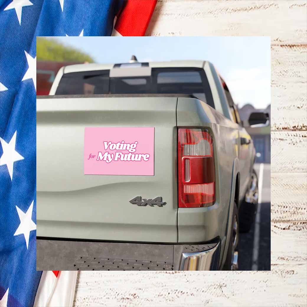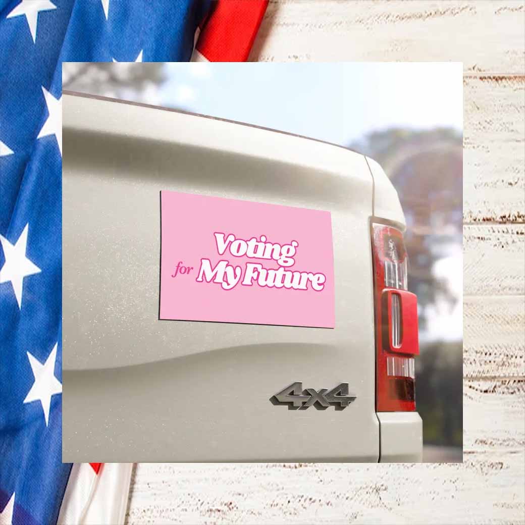 Show your support for the future you believe in with our vibrant “Voting for my future” car magnet in a bold shade of pink. This eye-catching accessory is more than just a decoration; it’s a statement of your commitment to shaping a better tomorrow.