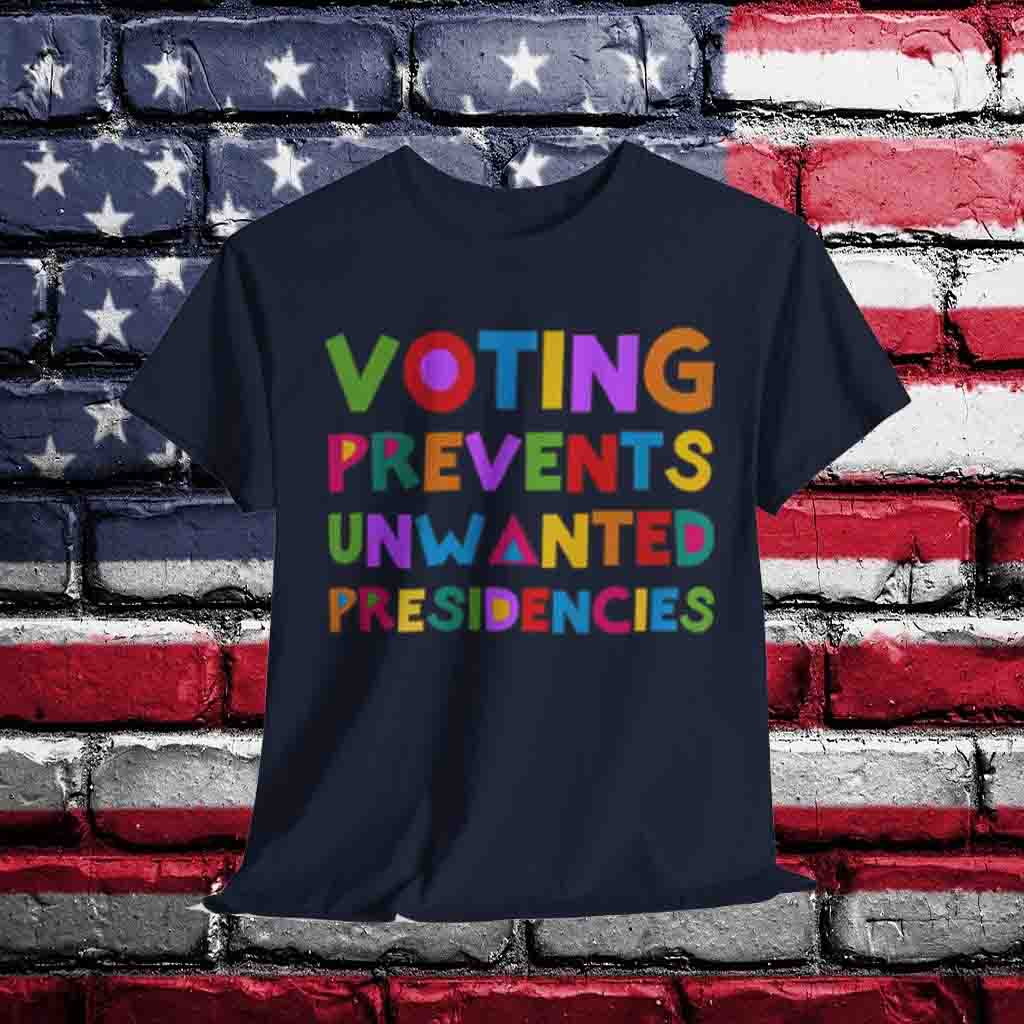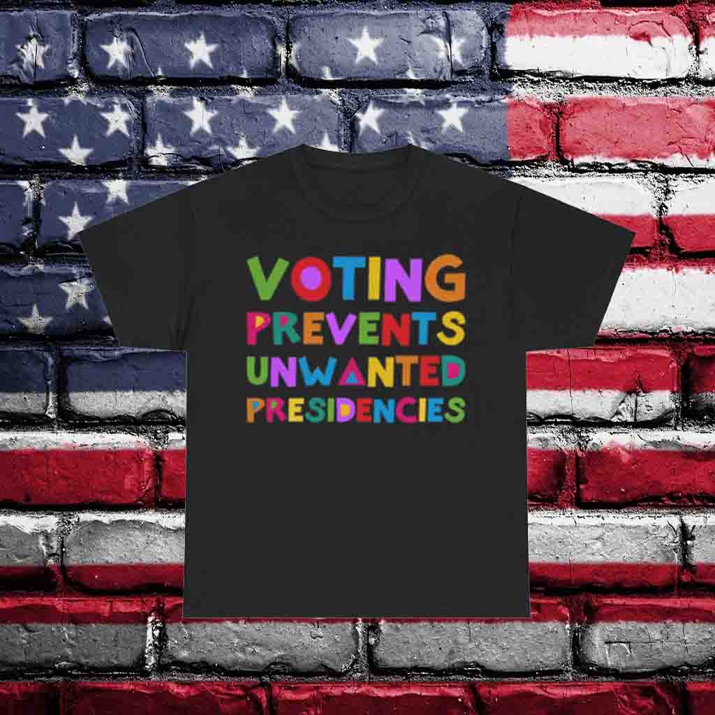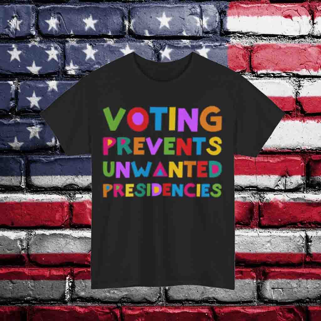 Join the movement to protect our democracy. Order your “Voting Prevents Unwanted Presidencies” shirt today and let your voice be heard. Together, we can ensure that our future is shaped by the leaders we choose.