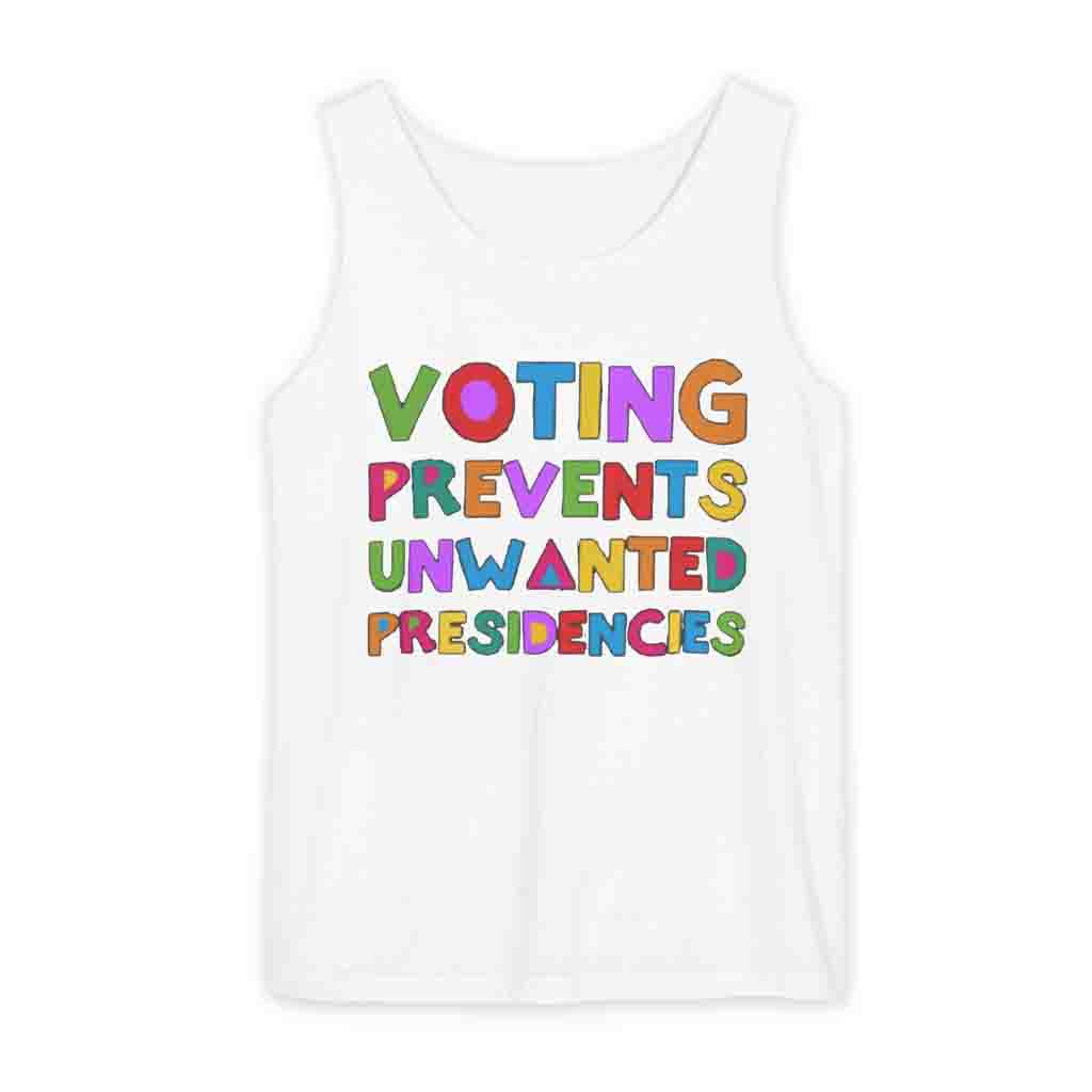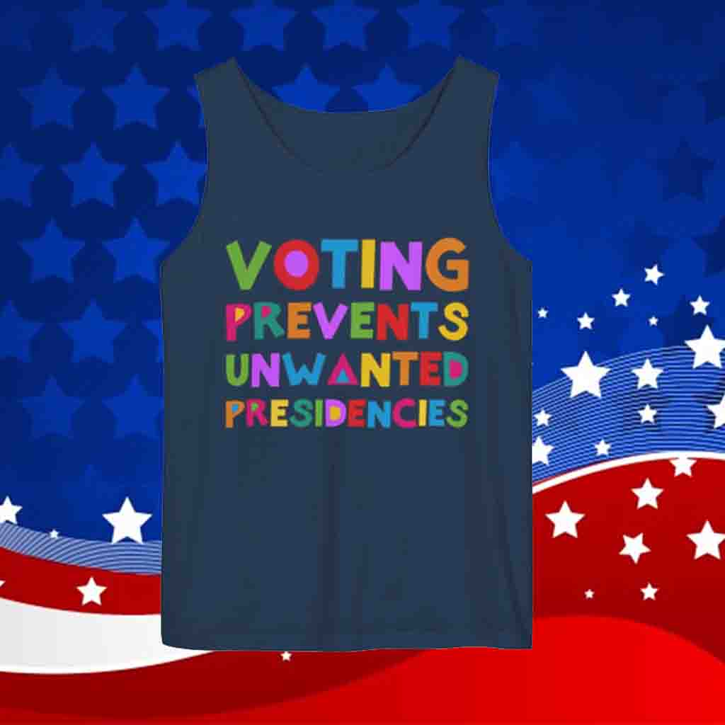 Join the movement to prevent unwanted presidencies. Order your “Voting Prevents Unwanted Presidencies” tank top today and let your voice be heard. Together, we can create a future where every vote matters.