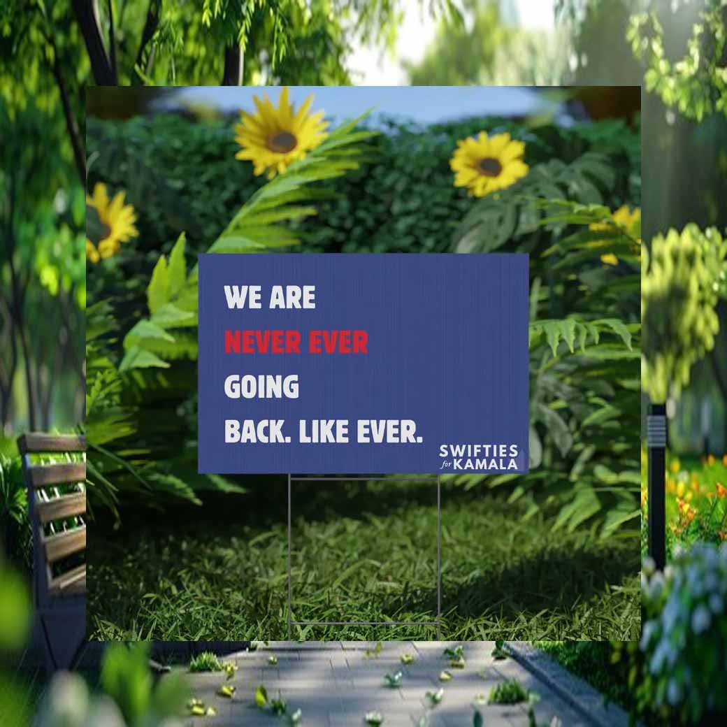 Join the movement and order your “We Are Never Ever Going Back, Like Ever” yard sign today. Let your voice be heard and show the world that you are not afraid to stand up for what you believe in.