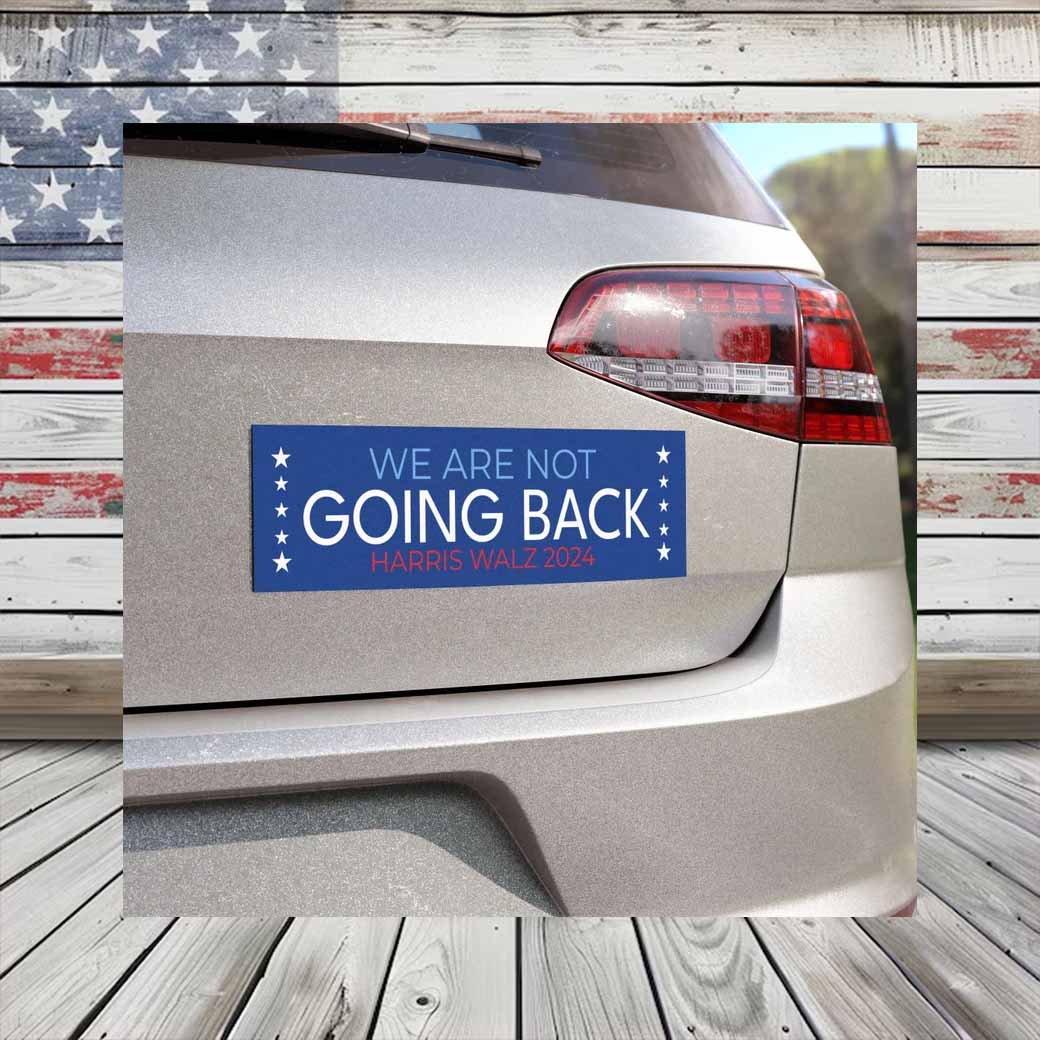 We Are Not Going Back Harris Walz Bumper Car Magnet