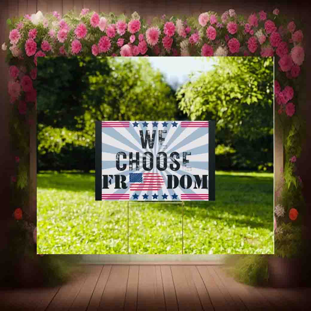 Join the movement for freedom and display your support with our “We Choose Freedom” Harris Walz yard sign. Let your yard become a symbol of hope, inspiration, and unwavering commitment to the principles that make our nation great.