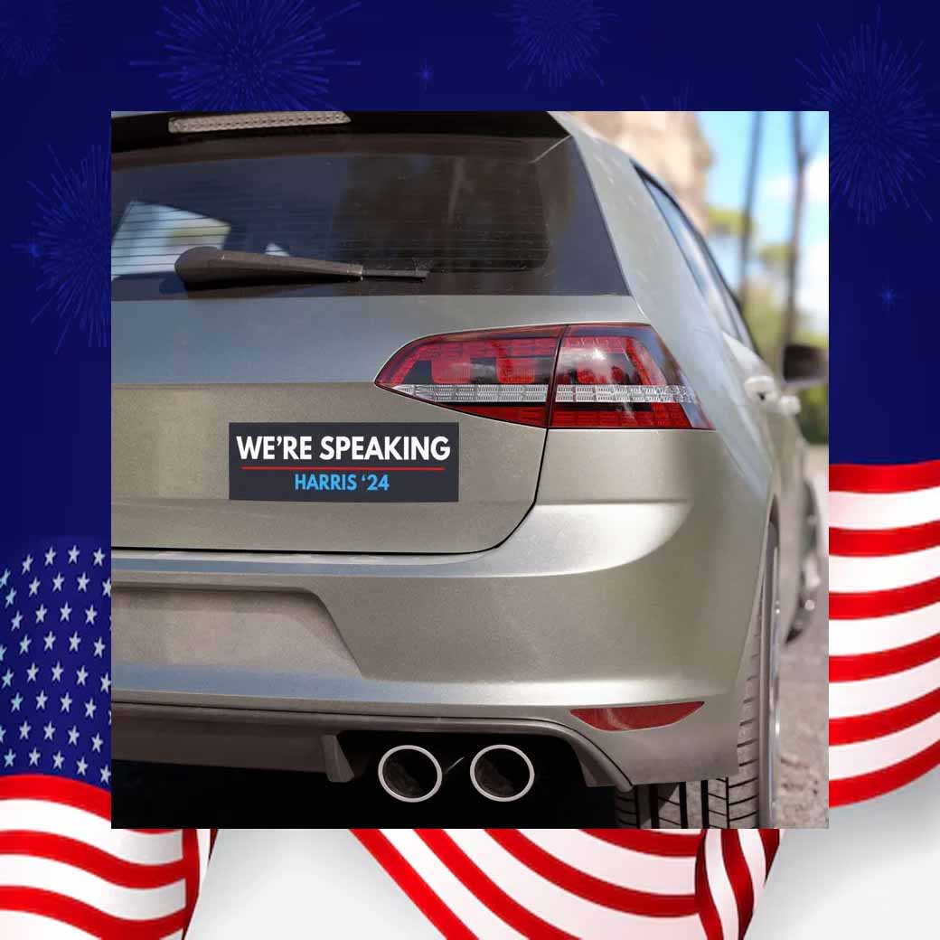 Order your “We’re Speaking Harris ’24” car magnet today and become part of the political revolution. Let your voice be heard and inspire others to join the cause.