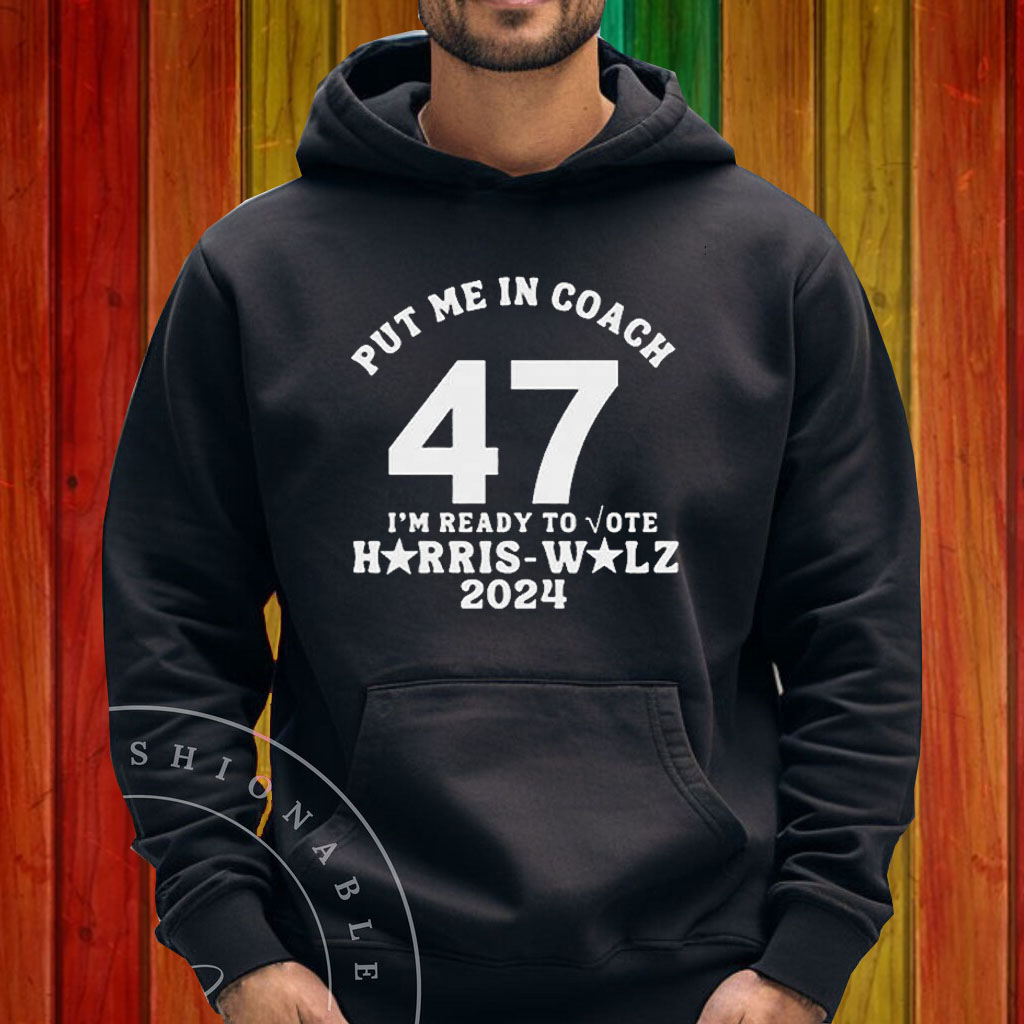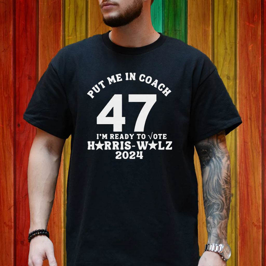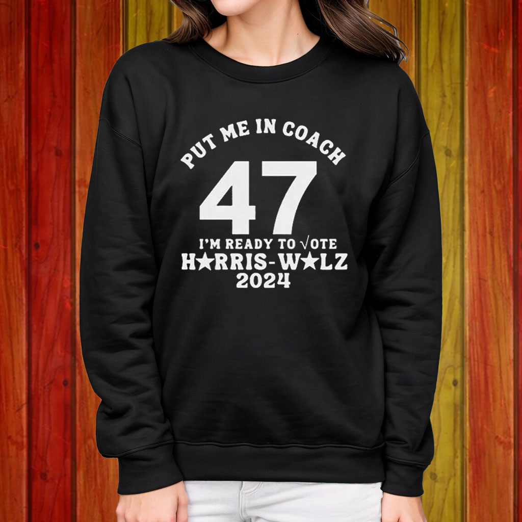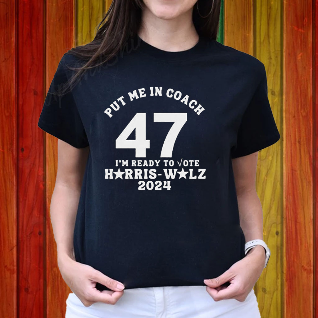 Women’s PUT ME IN COACH 47 I’m Ready To Vote Harris Walz 2024 Printed Shirt