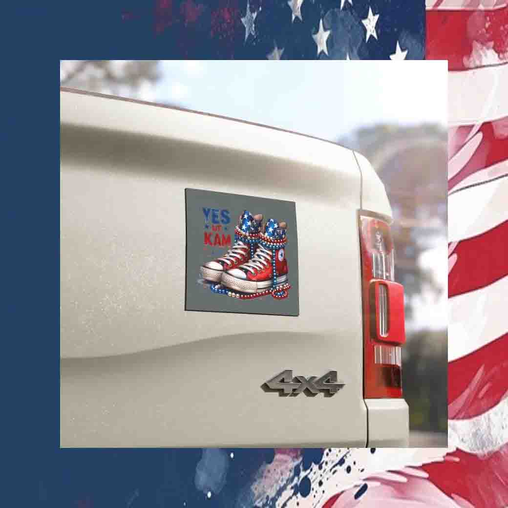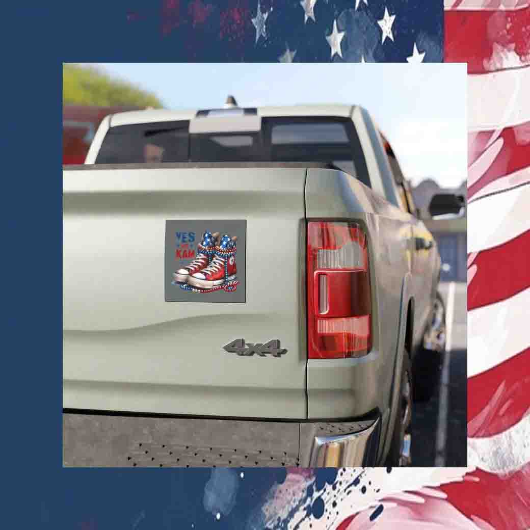 Show your support for the first female president of the United States with this bold and eye-catching car magnet. Featuring the iconic “Yes We Kam” slogan, this magnet is a powerful symbol of hope, progress, and the indomitable spirit of women everywhere.